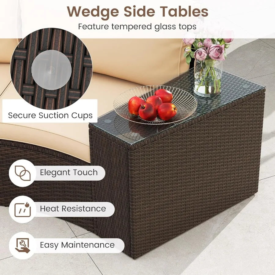 5 Pieces Patio Furniture Set with PE Rattan HalfMoon Curved Sectional Sofas and Tempered Glass Top Side Tables for Outdoor Conv