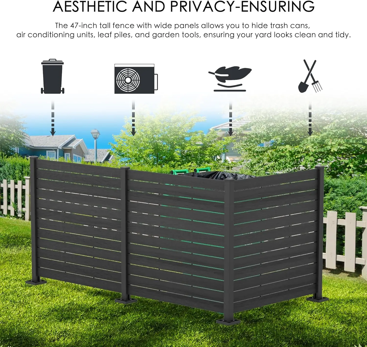 - š” Privacy Ensuring: Standing at 48 inches tall with wide panels, this fence effectively hides trash cans, air conditioning units, leaf piles, and garden tools, keeping unsightly items out of sight and ensuring your yard looks clean and tidy.