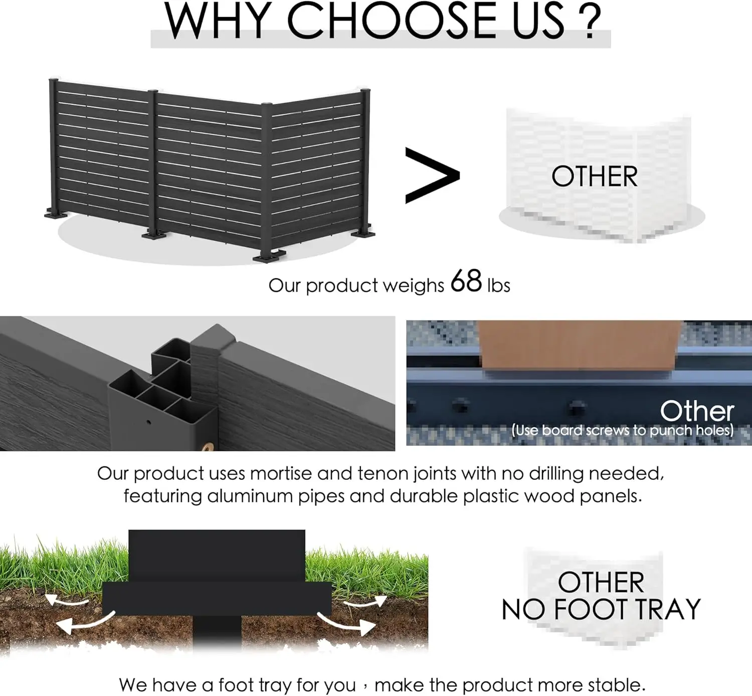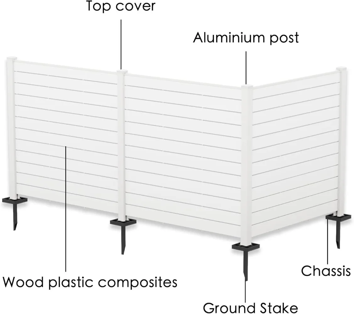 - š” High-Quality Material: Our outdoor privacy screens are crafted from medium-density polyethylene, designed with a wood-like appearance that is more resistant to water and corrosion than cast iron. The 3/16-inch gaps between the boards provide ventilation while maintaining privacy. The smooth surface resists dust and stains, and the simple white color complements any setting.