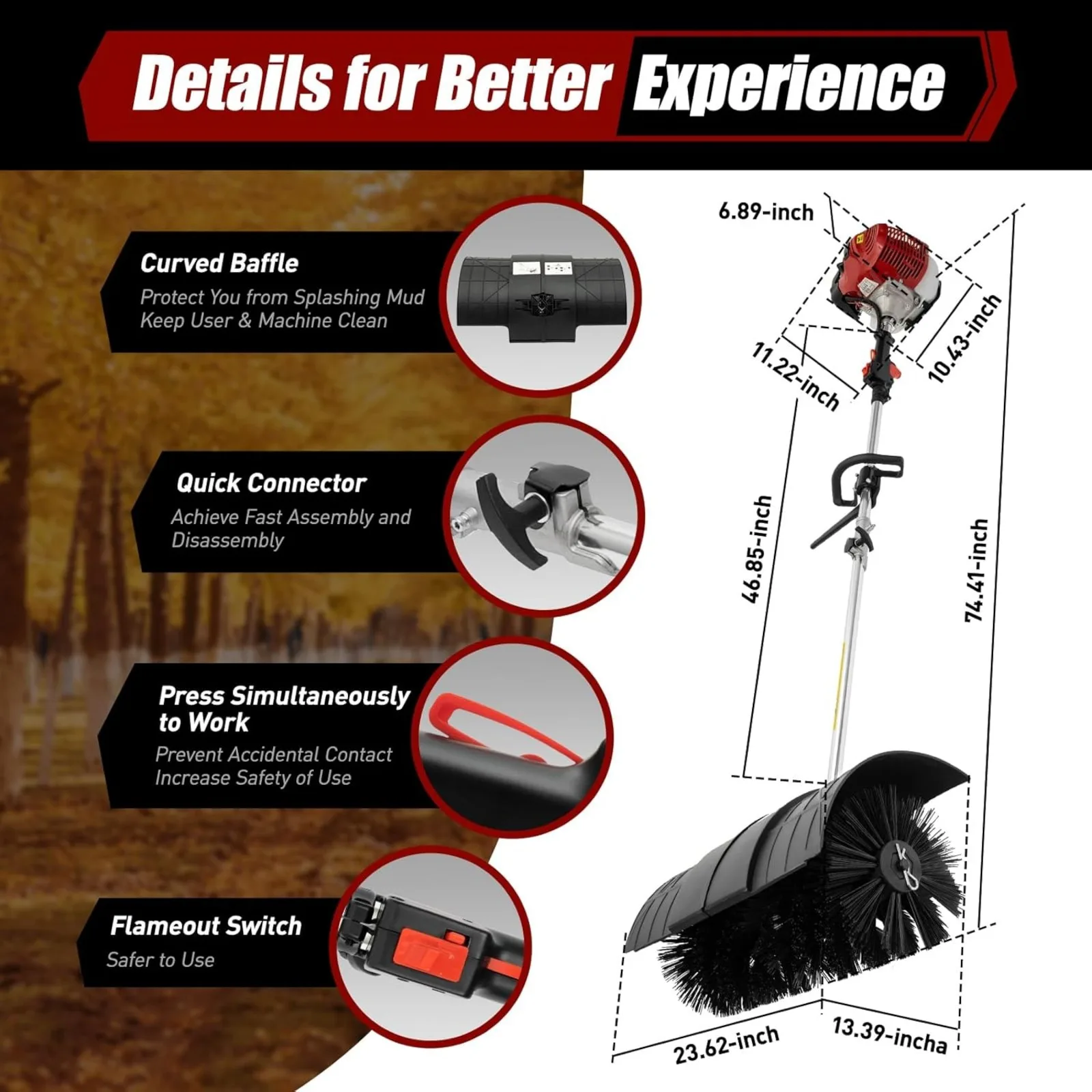 Are you still worried about the large amount of leaves in front of your door, and are you still sweeping your yard with a traditional broom? Such sweeping is time-consuming and laborious, and our lawn sweeper can help you clean up your lawn efficiently and easily. It is very nimble, convenient, and quick to use, making it a great helper for yard cleaning!