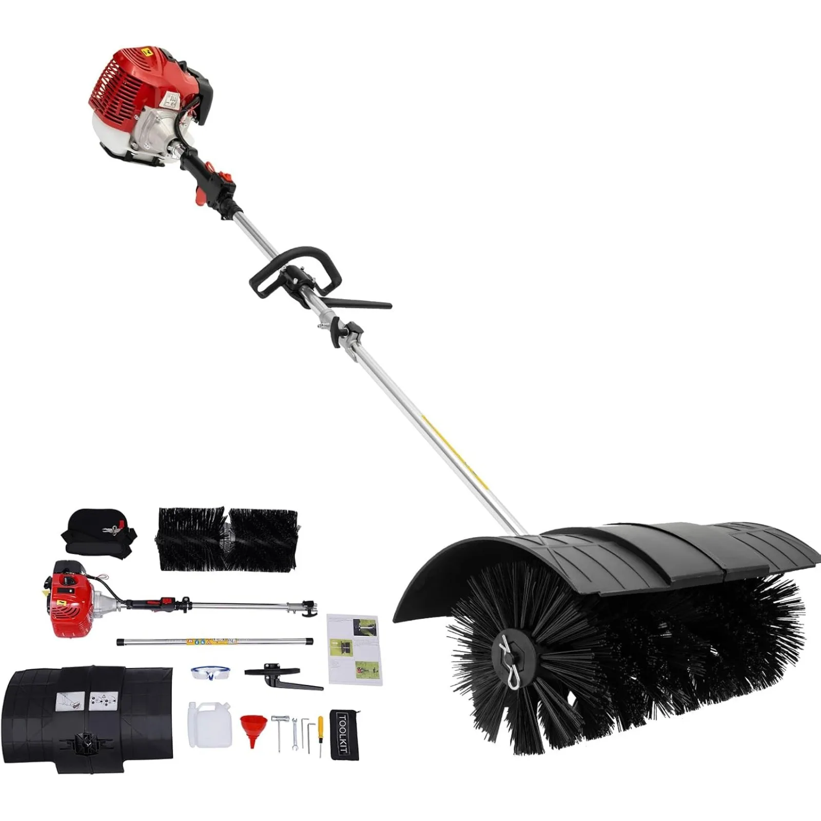 52CC 2 Stroke Gas Handheld Sweeper Broom, 1700W 2.3HP Gas Powered Artificial Lawn Sweeper, Outdoor Hand Held Gas Power Broom