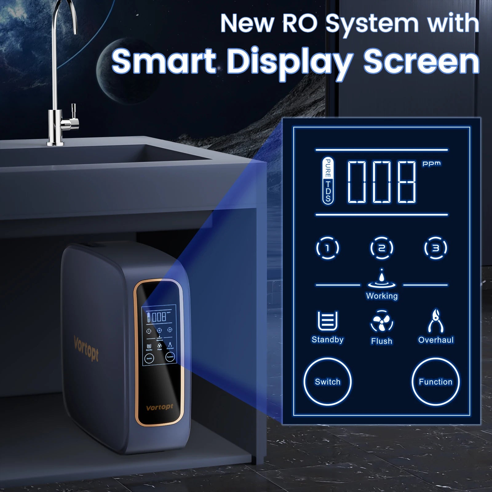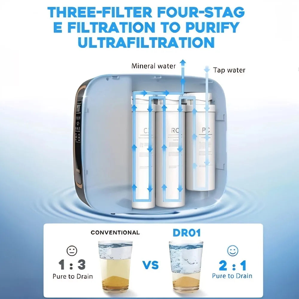 600G Kitchen tankless electronic reverse osmose four stage under counter housing water purifier RO Water Purifier