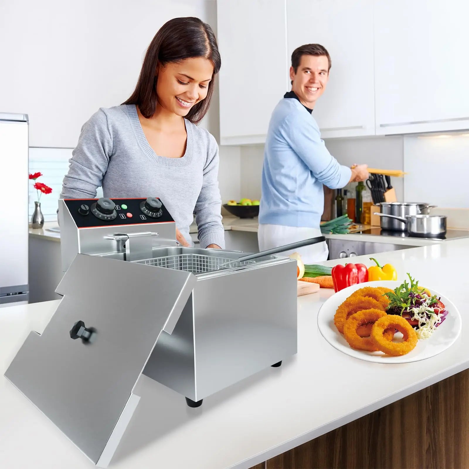 6L / 8L Commercial Deep Fryer,Stainless Steel Countertop Electric Deep Fryer with Basket, Easy to Clean