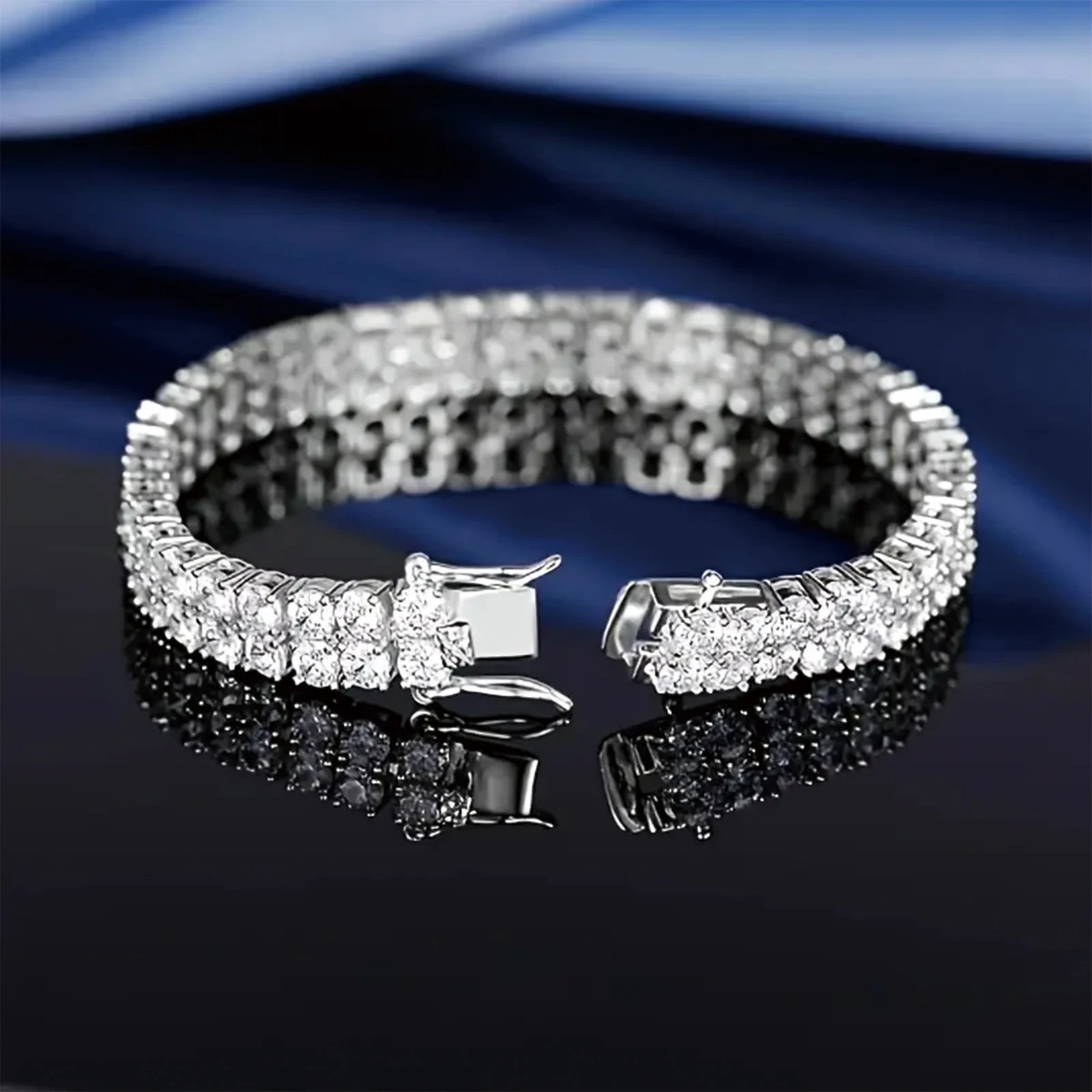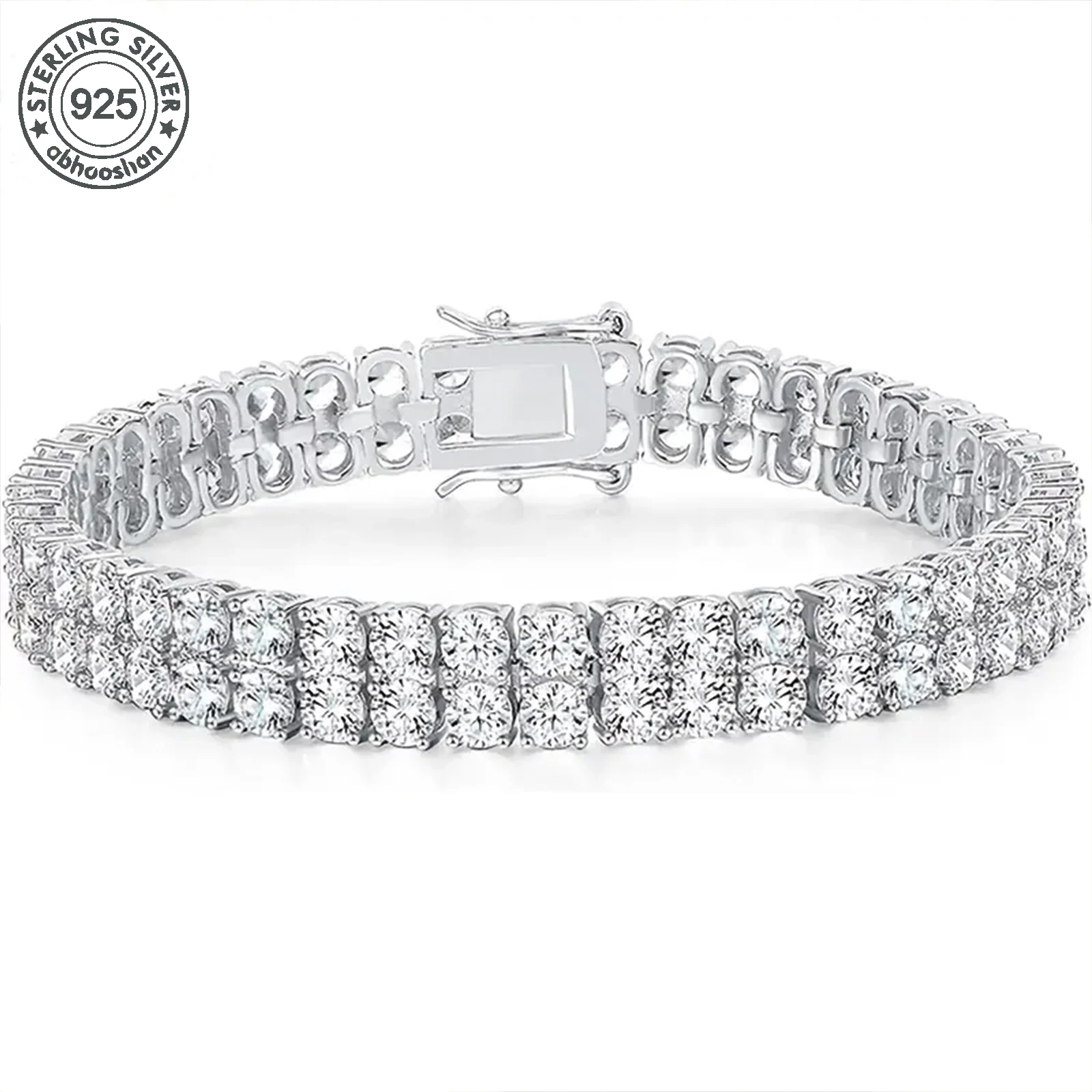 925 Silver 3mm Double Layered Moissanite Tennis Bracelet Double Layered Lab Cultured Diamonds Bracelet 925 Sterling Silver Tenni