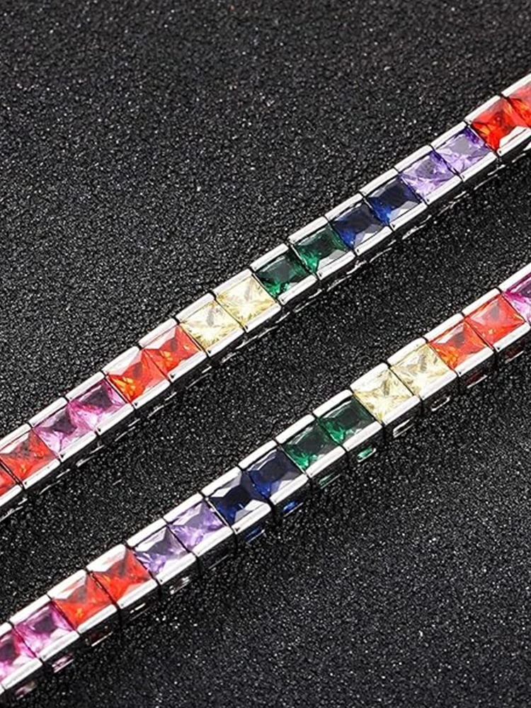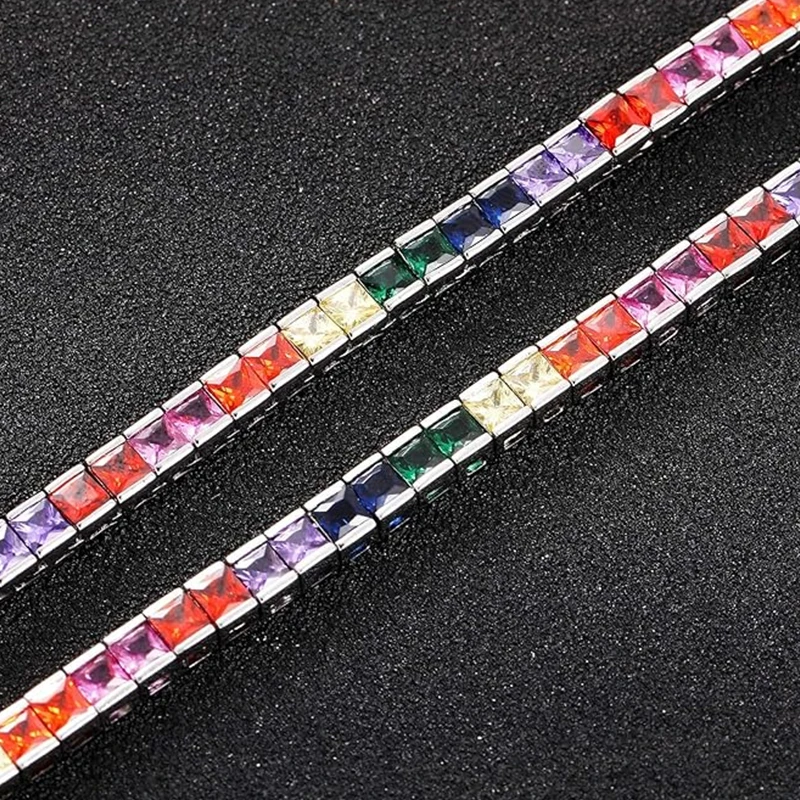 A dazzling 14K gold tennis bracelet adorned with rainbow-shaped cubic zirconia, the perfect gift for special occasions.