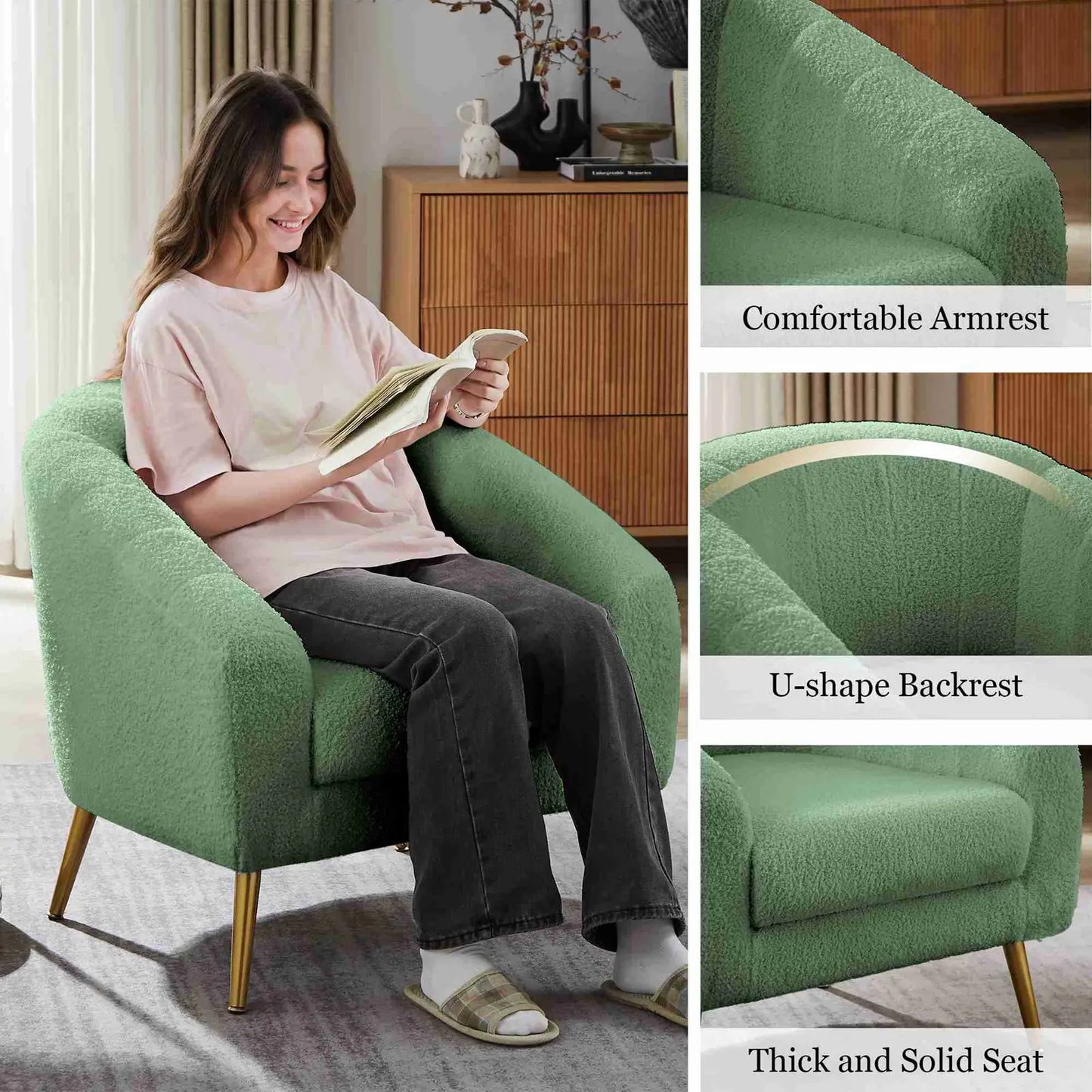 Accent Chair Fabric Wrapped Metal Legs Modern Accent Chair for Living Room Bedroom Light Green Chair Leisure Chair Reading Chair