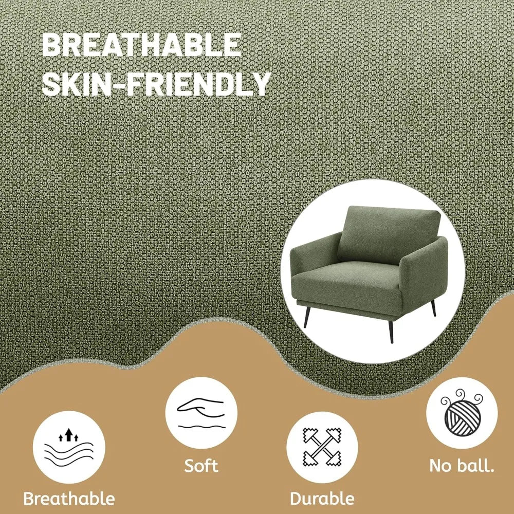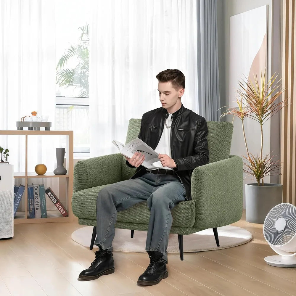 - 【Study and Resistent】This living room chair is supported by solid wood legs . The interior high density board is resistant while enhancing your comfort. Due to the solid wood frame construction, the accent chair can withstand 300 pounds, ensuring the sturdiness of our comfy chair.fabric is not easy to leave a mark. Carefully selected fabric is very skin friendly, no misgiving about rubbing your skin and not easy to wrinkle or pill.