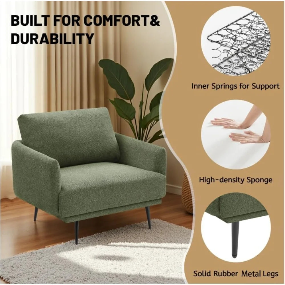 - 【Multi Application Scenario】This accent chair can be used as a bedroom chair or a reading chair in the den. The accent chair for living room is also perfect for allowing you to chat with friends or enjoy a coffee. In short,this armchair is a multifunctional sofa chair for the living room and bedroom. whether you want to place it in an office area or a lounge area, our accent is a great way to show off its versatility.