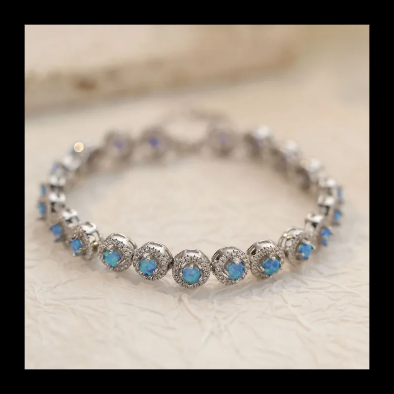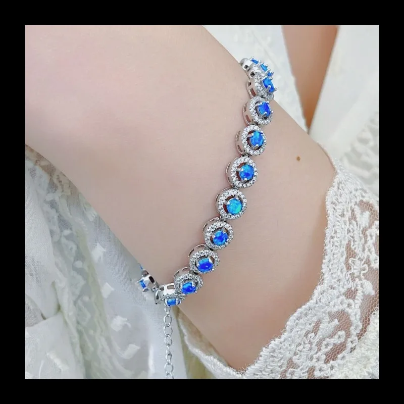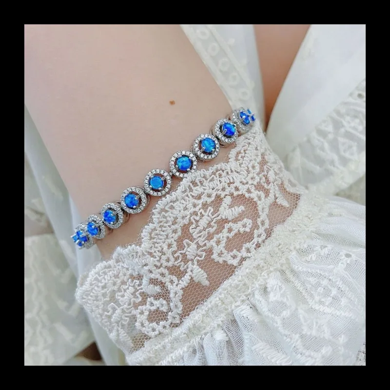 Accessories Small Round Bracelet with Diamonds Blue Opal Simple Hand Jewelry Fashion Versatile Silver Bracelet