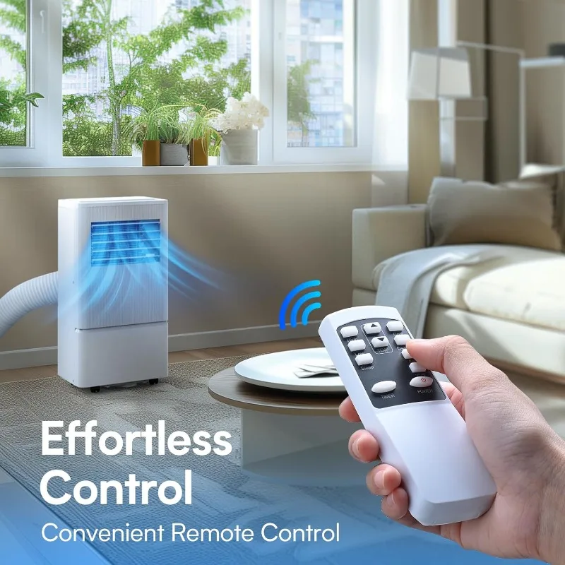 Dual Controls & Easy Maintenance: This small portable air conditioners with both a digital control panel and a compact remote, adjusting the mode, temperature, timer, and fan speed is simple from anywhere in the room to match your preferences. The removable filter is washable, ensuring fresh, clean air throughout your home