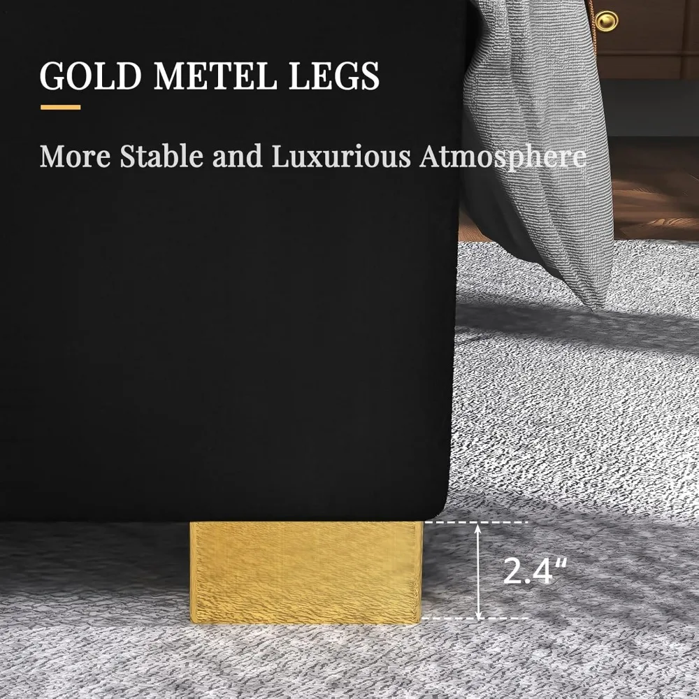 - 【Glam & Elegant Looking】Sleek upholstery and tufted headboard combined with polished golden metal frame and legs, platform bed adds a luxurious elegant vibe to your bedroom.