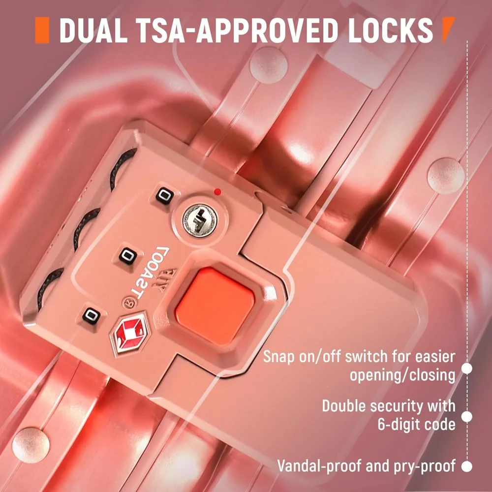 Certainly, here's the description without any brand names, warranty information, chemical substances, or special symbols: - Size: 19.7" x 13.4" x 9.46", Weight: 12.58 lbs, Volume: 40L. Carry-On Luggage complies with the carry-on bag restrictions of all major airlines around the world, and fits easily into the overhead bins without the need to carry extra luggage. - The surface of the travel luggage is made of a full metal plate, and reinforced corners, which can withstand up to 180lbs, ensuring durability during travel. - The 20-inch carry-on luggage comes in 5 colors: black, silver, fruit green, dark green, and rose gold. The vibrant colors and hard shape give a fashionable look, making the hardside carry-on luggage a style statement wherever you go. - The luggage features a zipperless design, which greatly strengthens the safety and airtightness, offering a more beautiful and practical appearance without the risks associated with zipper damage. - The luggage is TSA approved and features 360° spinner wheels for smooth rolling, and a telescoping aluminum trolley bar with 3-position ergonomic adjustments for optimal height comfort. - Spacious interior and multiple pockets with cross straps and dividers for easy packing; multiple pockets to keep items neatly organized.