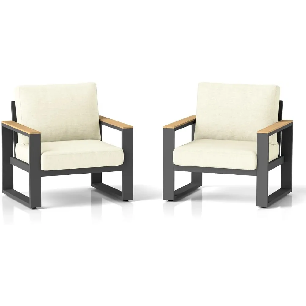 Aluminium Outdoor Patio Chairs, 2 All-Weather Metal Patio Sofas with Height Adjustable Feet, Outdoor Patio Terrace Garden Chairs