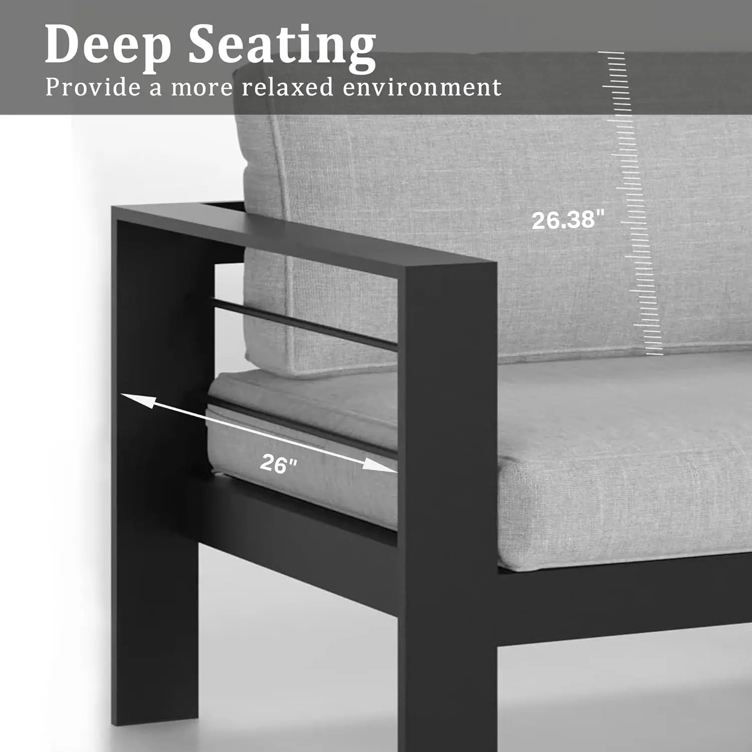 Aluminum Outdoor 2 Pcs Sofa Patio Couch AllWeather Metal Outdoor Couch with 5" Thick and Soft Cushion Deep Seating Patio Sofa fo