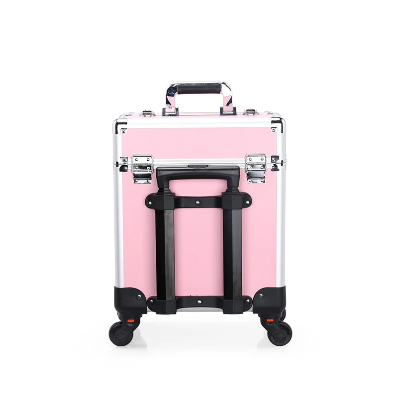 Aluminum Rolling Makeup Case Lockable Cosmetic Salon Organizer Trolley Case With Trays