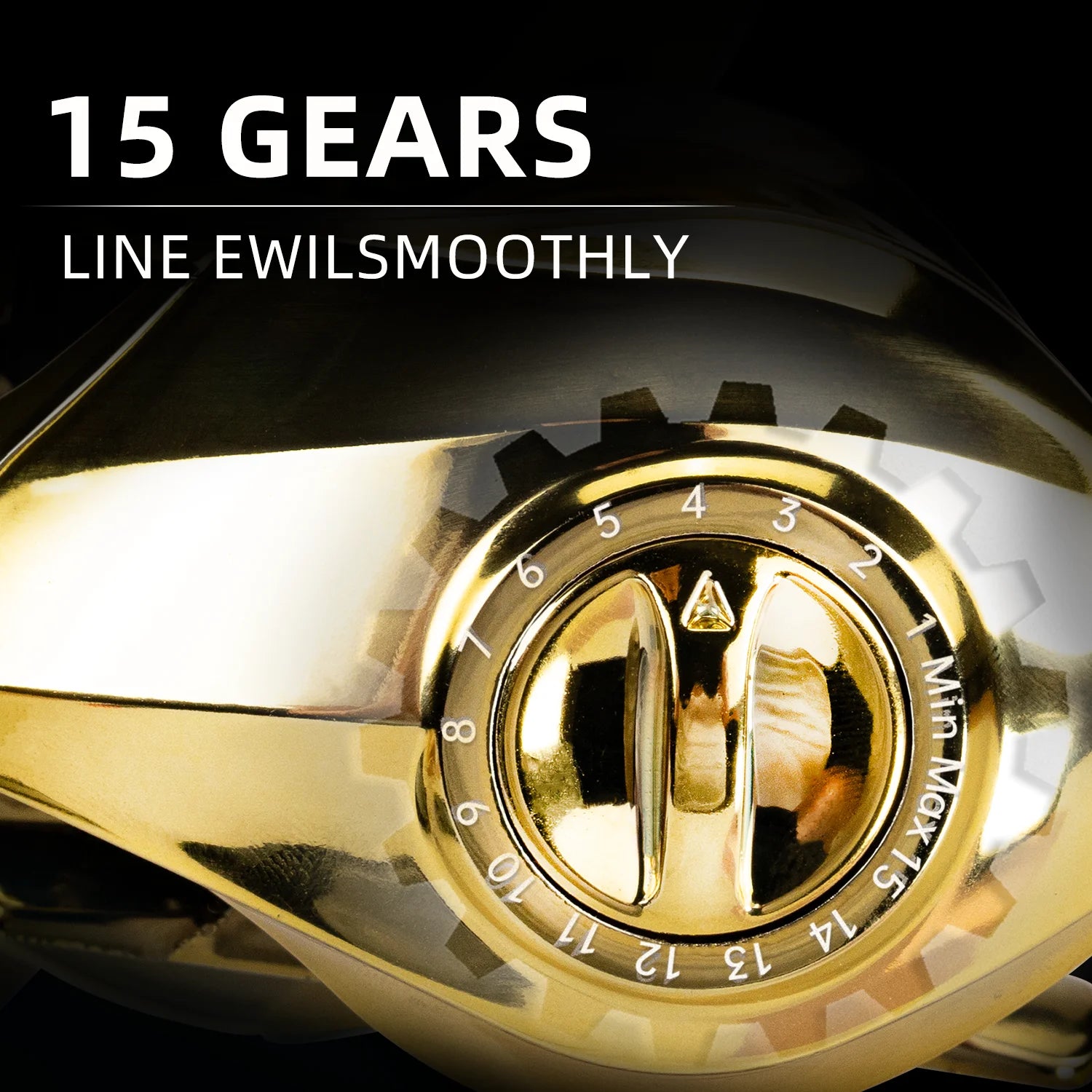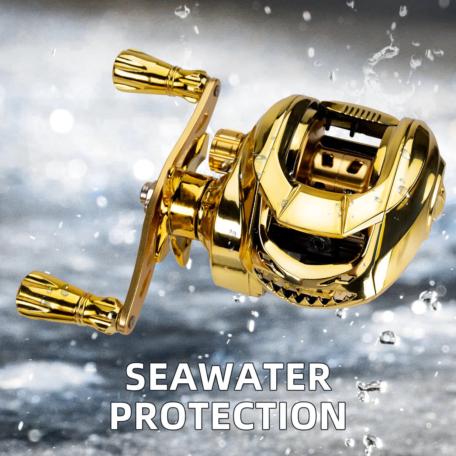Ambidextrous Aluminum Alloy & Stainless Steel Baitcasting Fishing Reel - Rotating, 18+1 Bearings, Golden, Multipurpose