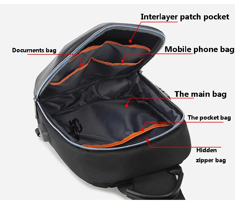 Anti-theft lock Chest Bag for men USB charging travel Shoulder bag High-quality Messenger Bags Waterproof Men's Crossbody Bag