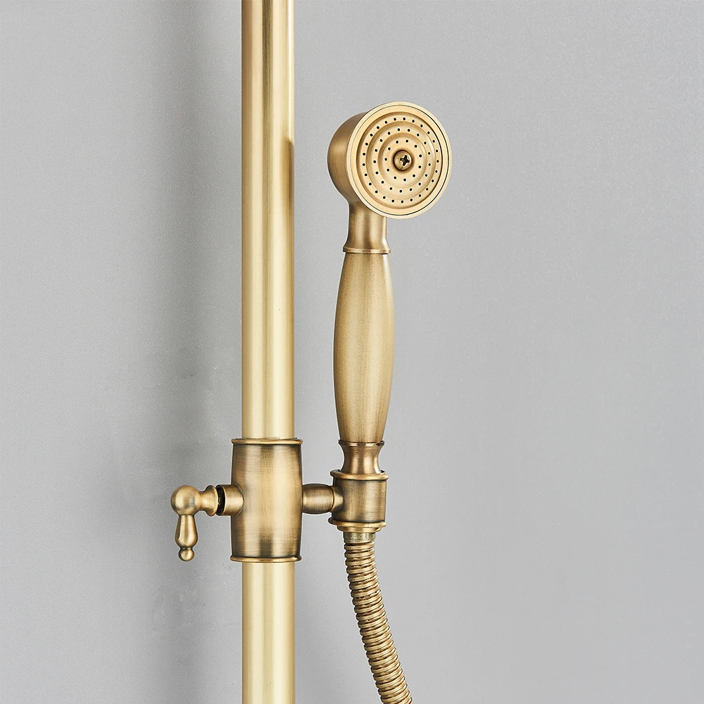 Antique Brass Bathroom Shower Faucet Sets Rainfall Head Wall Mounted Mixer Tap Hot and Cold Taps