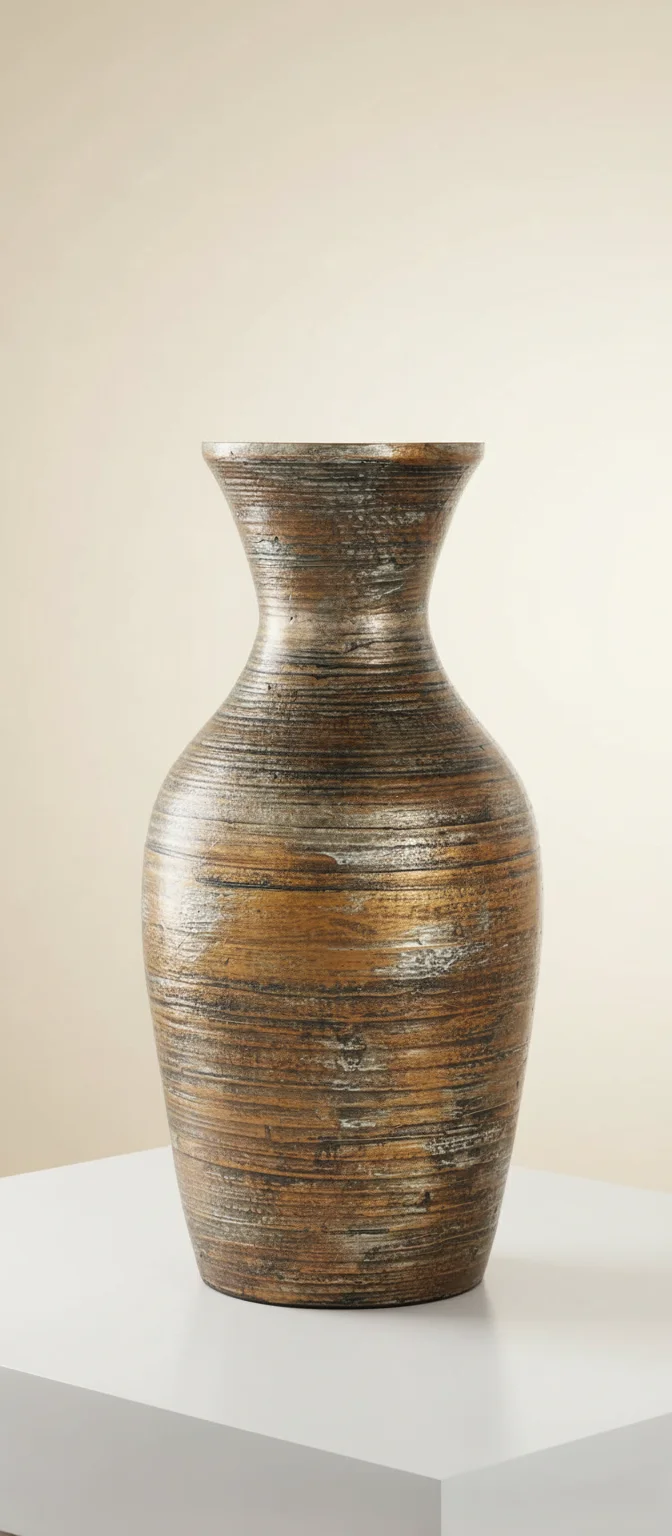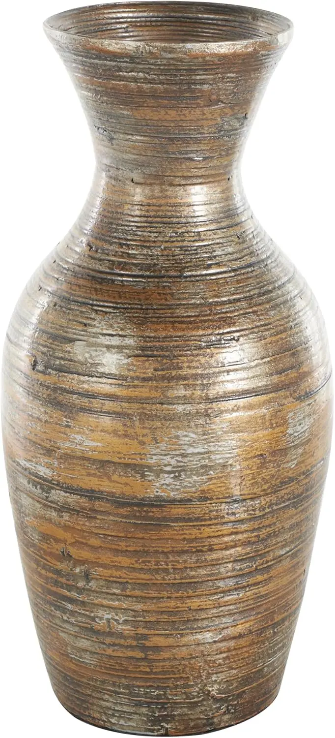 Transform your living space with this exquisite antique-inspired bamboo wood vase, designed to bring bohemian charm and natural elegance to any room. Crafted from sustainable bamboo, this eco-friendly centerpiece showcases a beautiful distressed finish in rich light and dark brown tones, accented with subtle silver details that enhance its vintage aesthetic. Measuring 8.3L x 8.25W x 17.6H inches, this large decorative vase is perfect for displaying your favorite floral arrangements, dried branches, or standing alone as a stunning statement piece. Its textured surface and natural color variations create a unique, handcrafted look that adds character and warmth to your home decor. Imagine this beautiful vase as the focal point of your dining table, bringing sophistication to family gatherings and dinner parties. Place it on your mantelpiece to create a cozy, inviting atmosphere in your living room, or use it in your bedroom to add a touch of serene elegance. The durable bamboo construction ensures long-lasting beauty while supporting environmentally conscious choices. Elevate your interior design with this versatile vase that complements various styles from rustic farmhouse to modern bohemian. Its generous size makes it ideal for filling empty corners or enhancing shelf displays with artistic flair. Picture how this captivating vase will become the conversation starter in your home, reflecting your unique taste and love for nature-inspired decor. Don't miss the opportunity to own this beautiful piece that combines sustainability with timeless style – order now and begin transforming your space today!