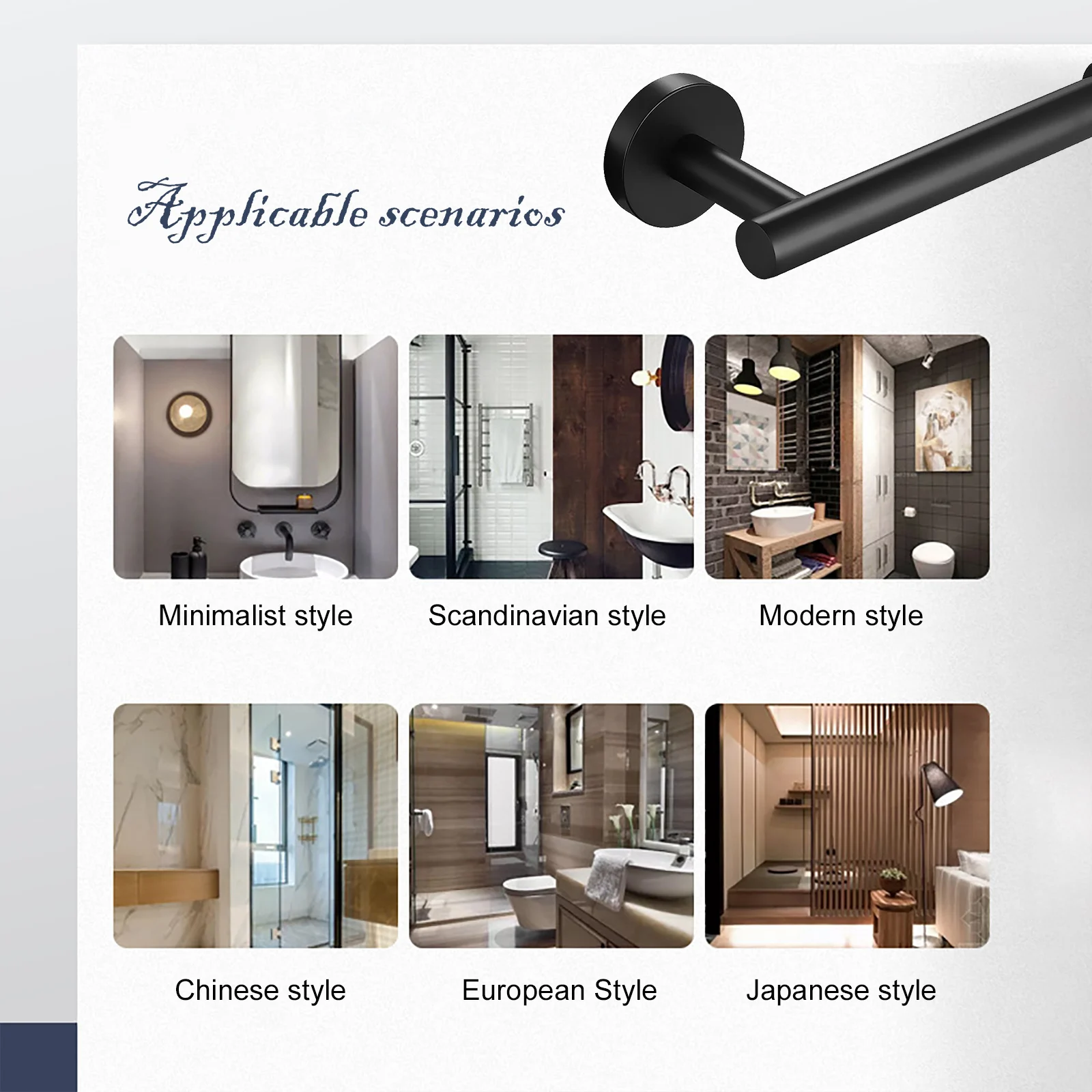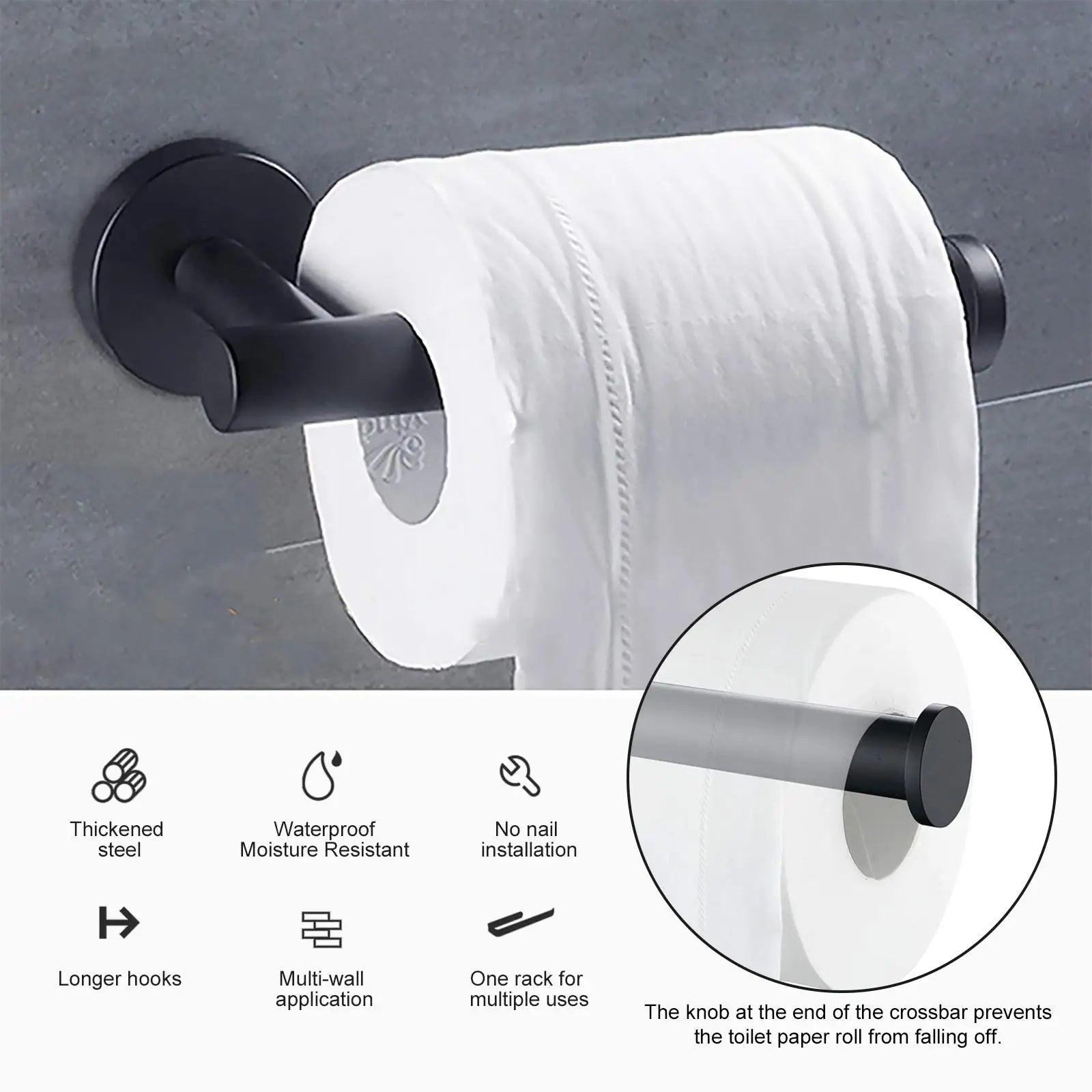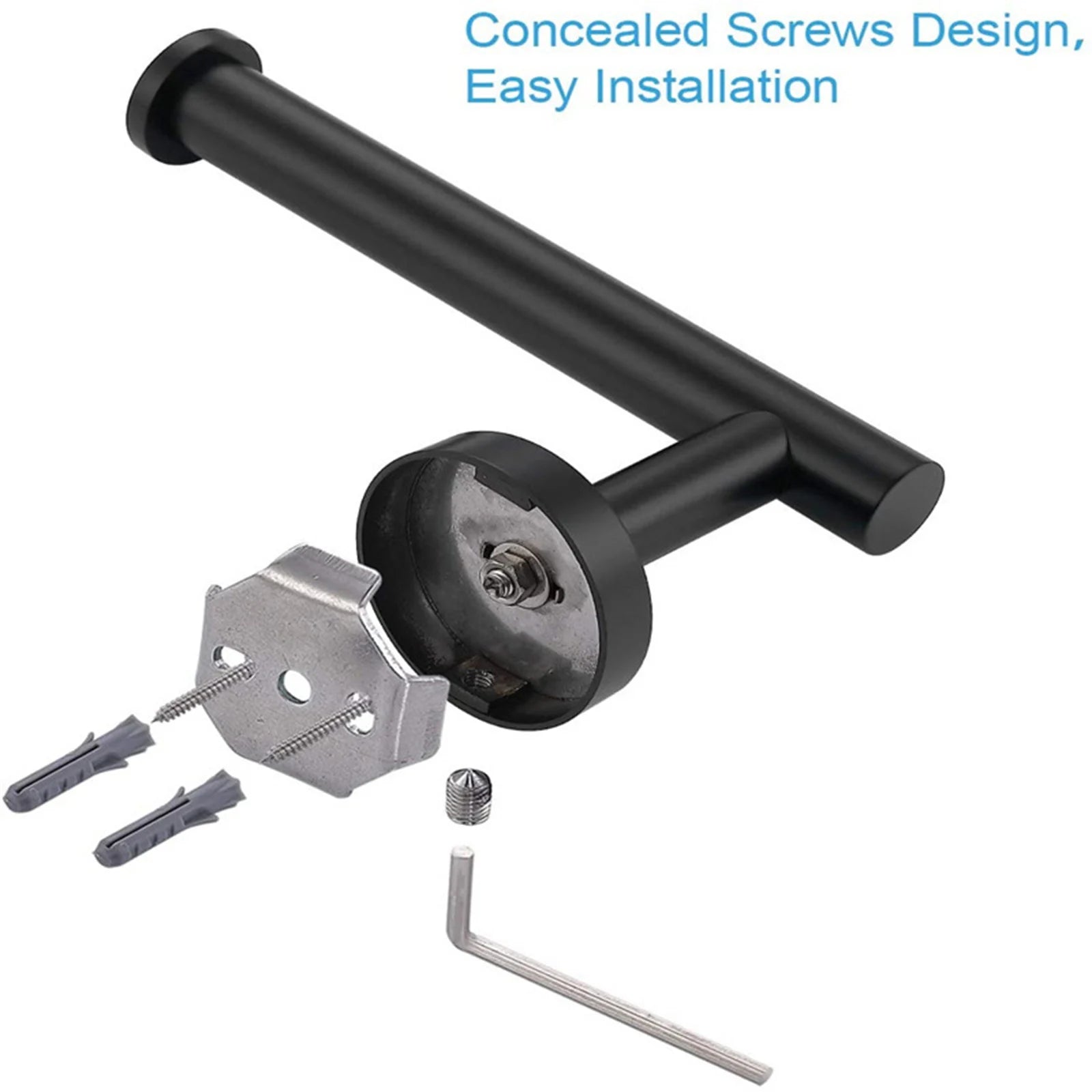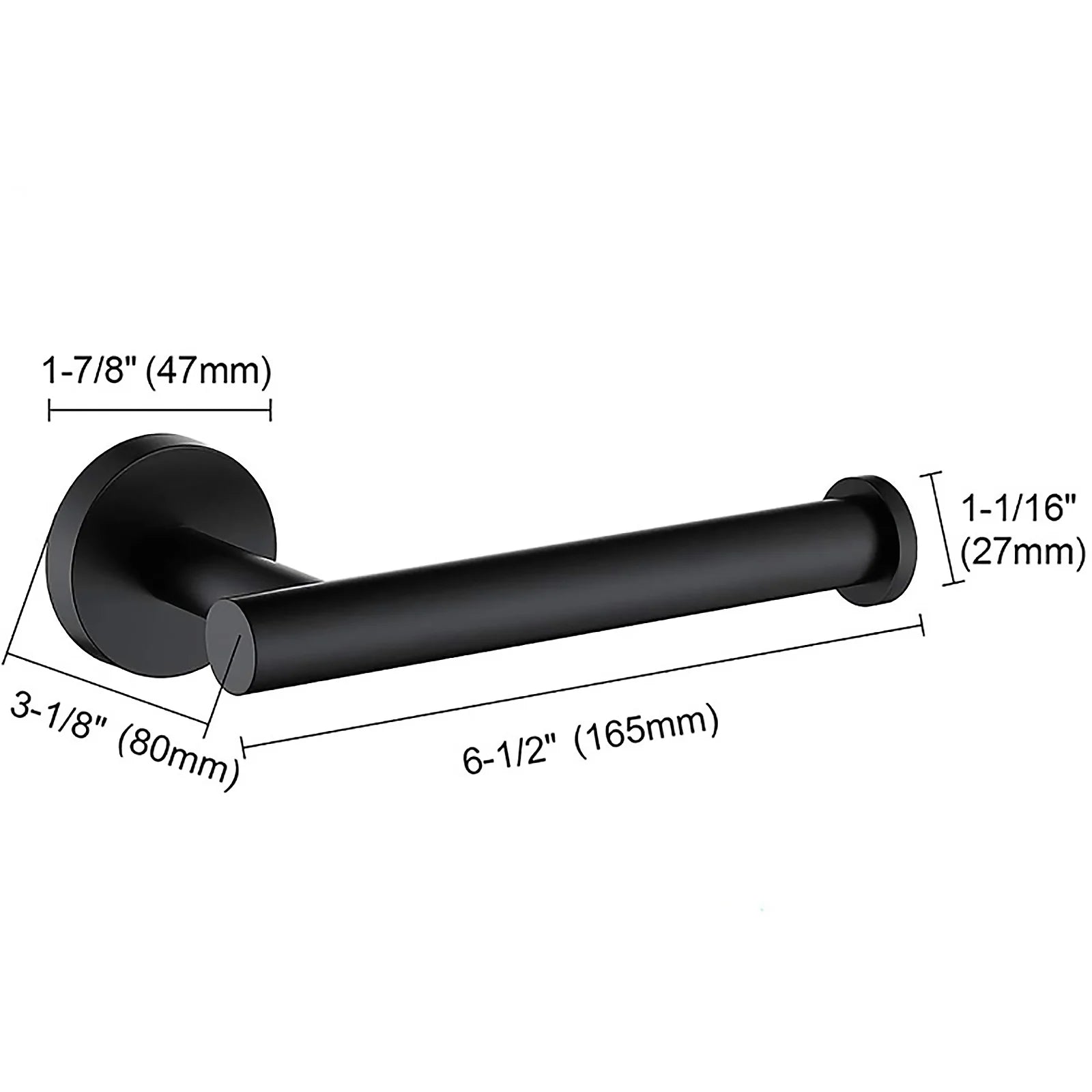 1.Versatile and Secure: The toilet paper holder offers a length of 6.4 inches, accommodating oversized toilet paper rolls. The end knob on the horizontal bar prevents the toilet paper from falling off, ensuring a secure and hassle-free experience. Specification: Origin: Mainland China Material: 304 stainless steel Color: Black Size: 165*80*27mm/6.4*3.15*1.06inch Note: Due to the different monitor and light effect, the actual color of the item might be slightly different from the color showed on the pictures. Thank you! Please allow 1-2cm measuring deviation due to manual measurement.