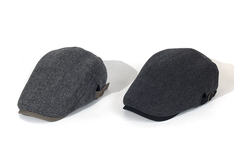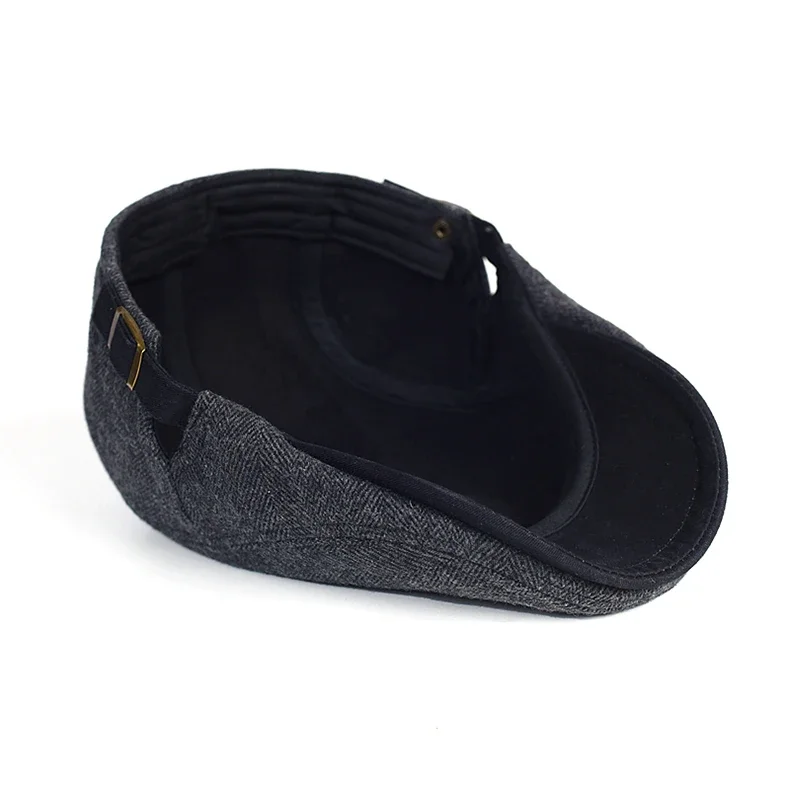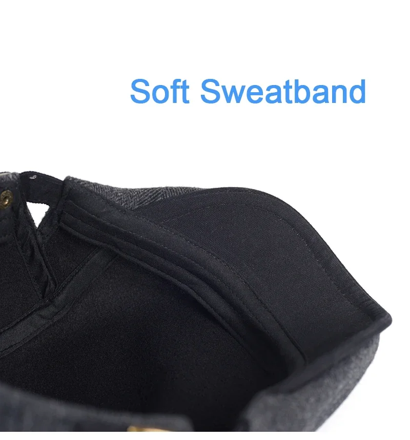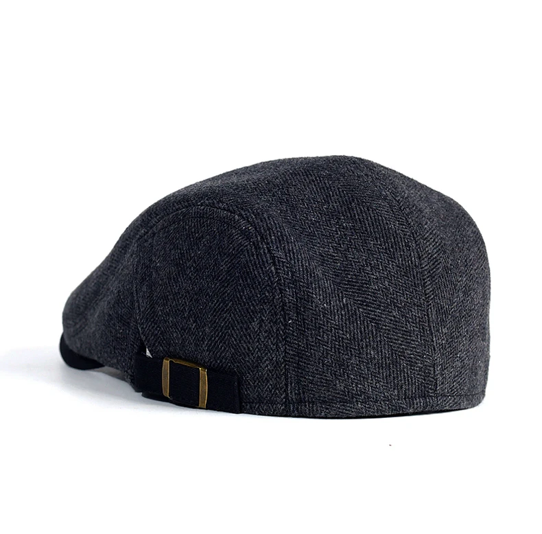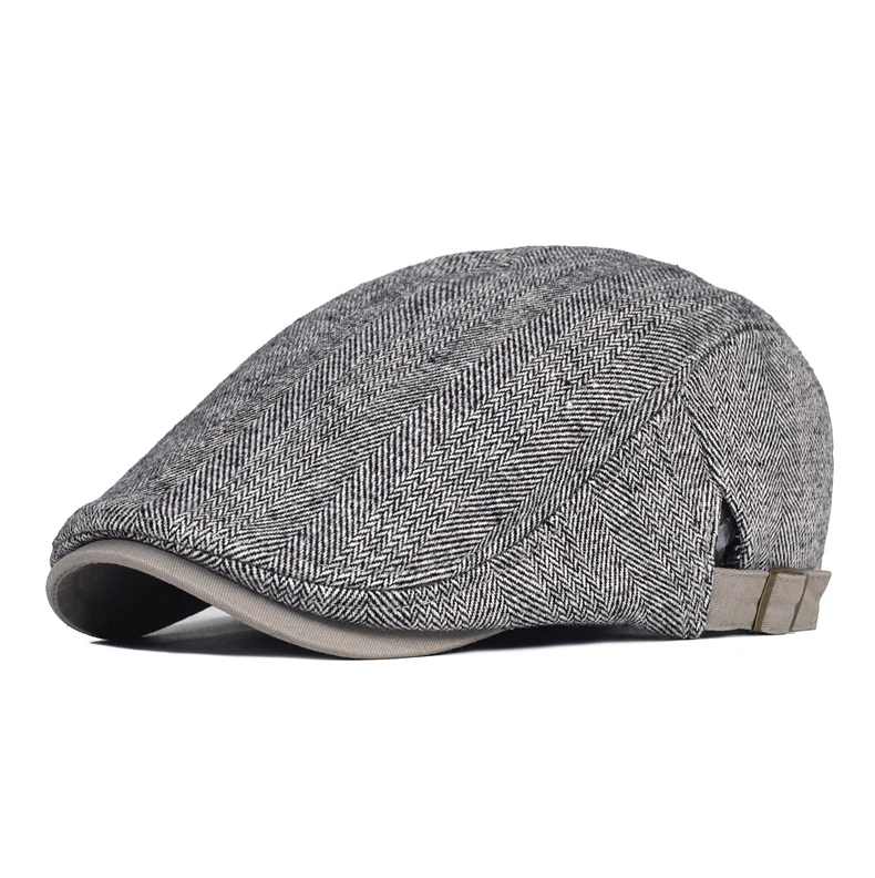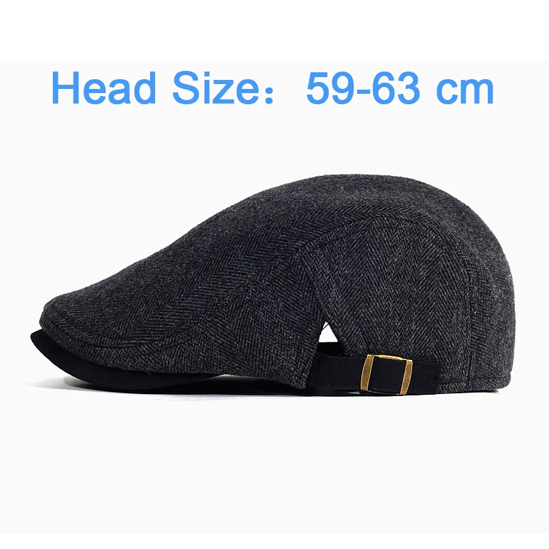 Big Size Newsboy Cap Men Winter Wool Thick Warm Vintage Herringbone Casual Stripe Berets Gatsby Flat Hat Peaked Cap Adjustable