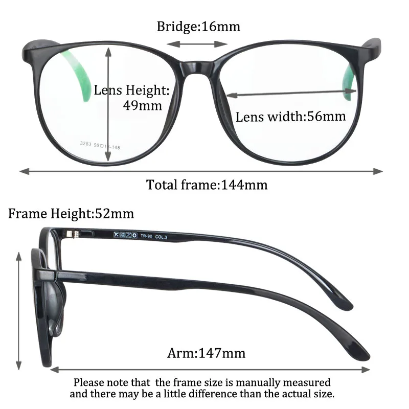 During the trial-wearing process of prescription glasses, it takes about a week to adapt. Some discomforts that begin to appear are normal, such as dizziness, eye swelling, distortion, etc. These symptoms usually disappear within two days. Anyone who wears glasses knows it. If you still cannot adapt within a week. Please contact our customer service. But it must be worn so that the eyes can adapt to the new frame.