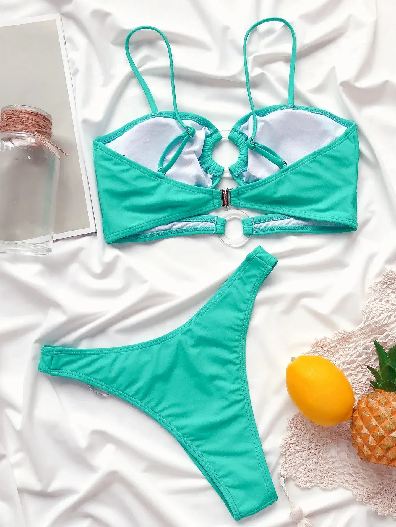 Bikini 2024 Sexy Women Green Hollow Ring Decor Swimwear Swimsuit Bikinis Set Bathing Suit Beach Bikini Female Biquinis Feminino