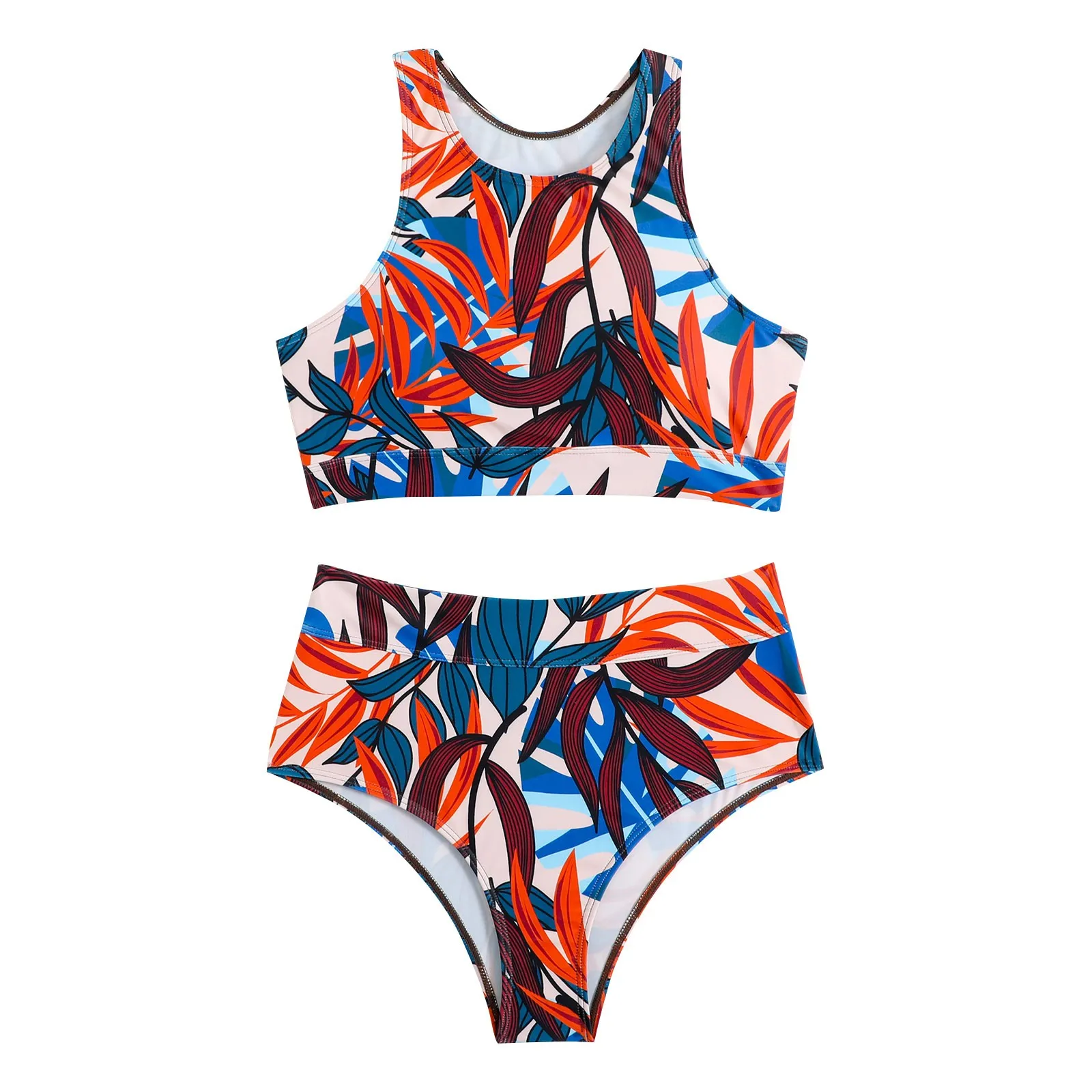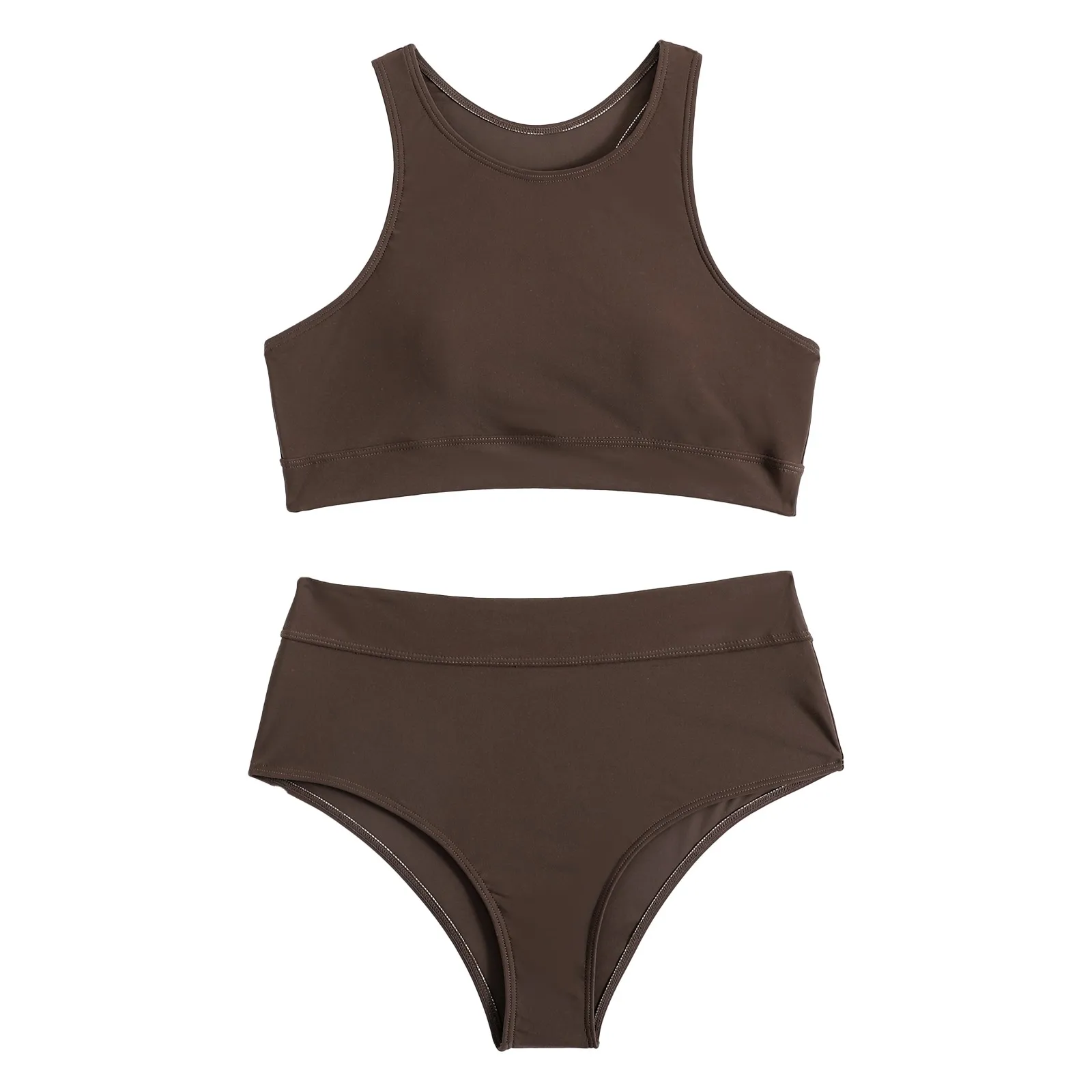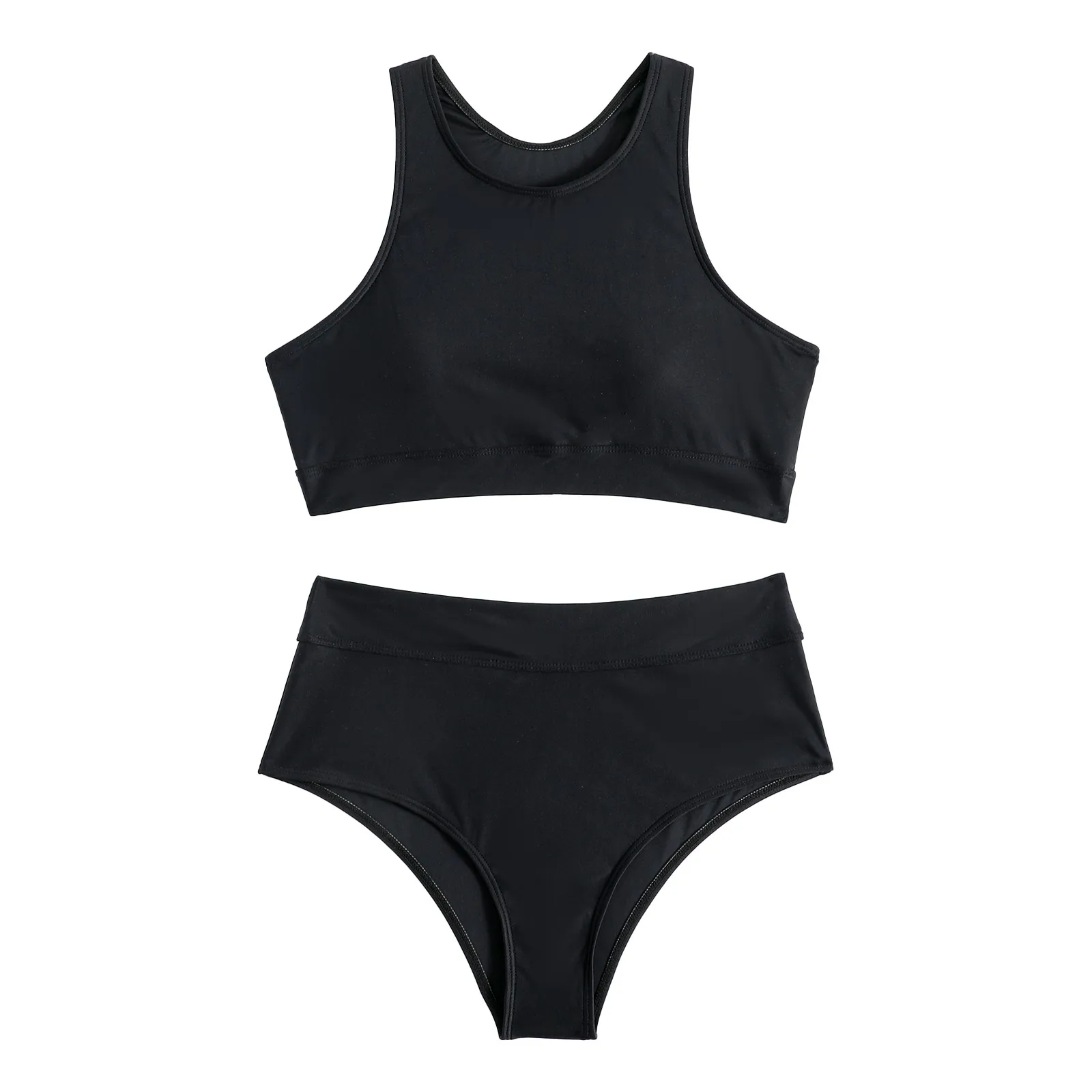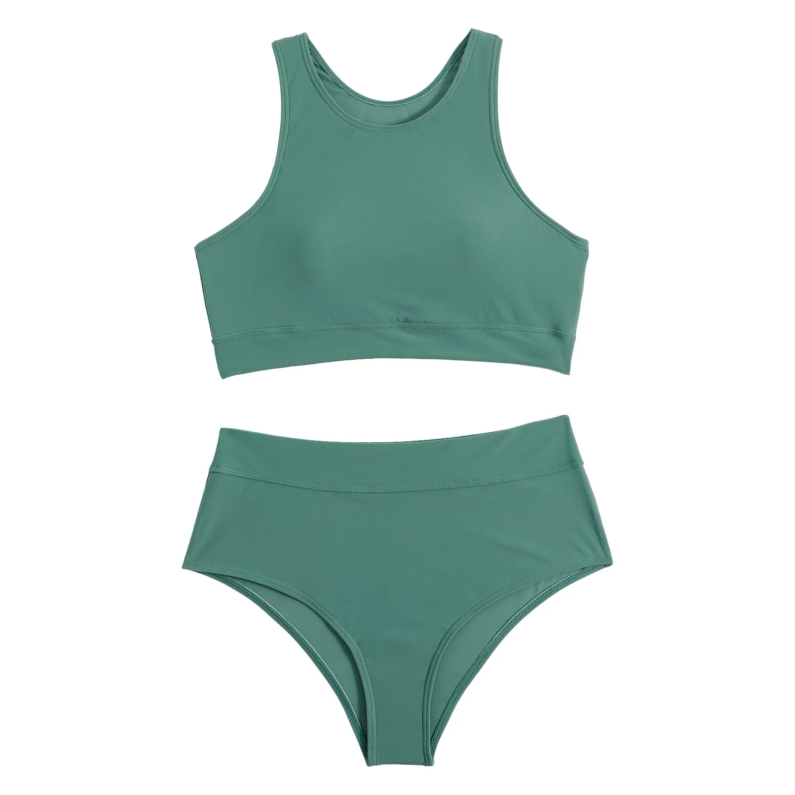 Bikinis 2024 Women High Waist Swimsuit Solid Neck Swimwear Female Sports Vest Bathers Bathing Swimming Suit Summer Beachwear