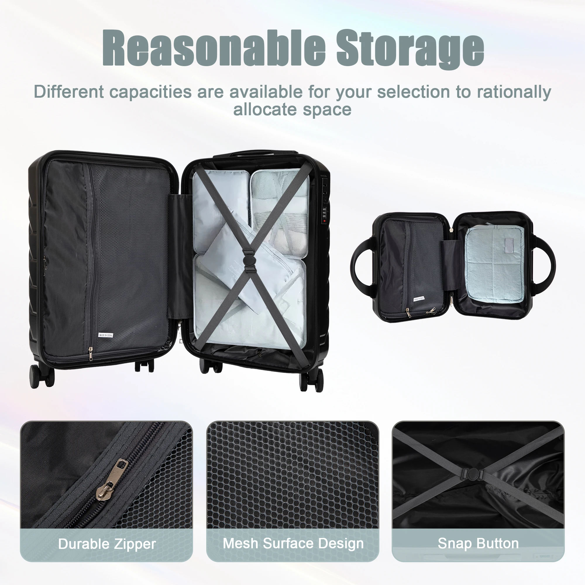 Versatile 2-Size Travel System: This 2-piece luggage set 20" with a dedicated 14" cosmetic case adapts seamlessly to weekend getaways — empowering smarter, stress-free travel.