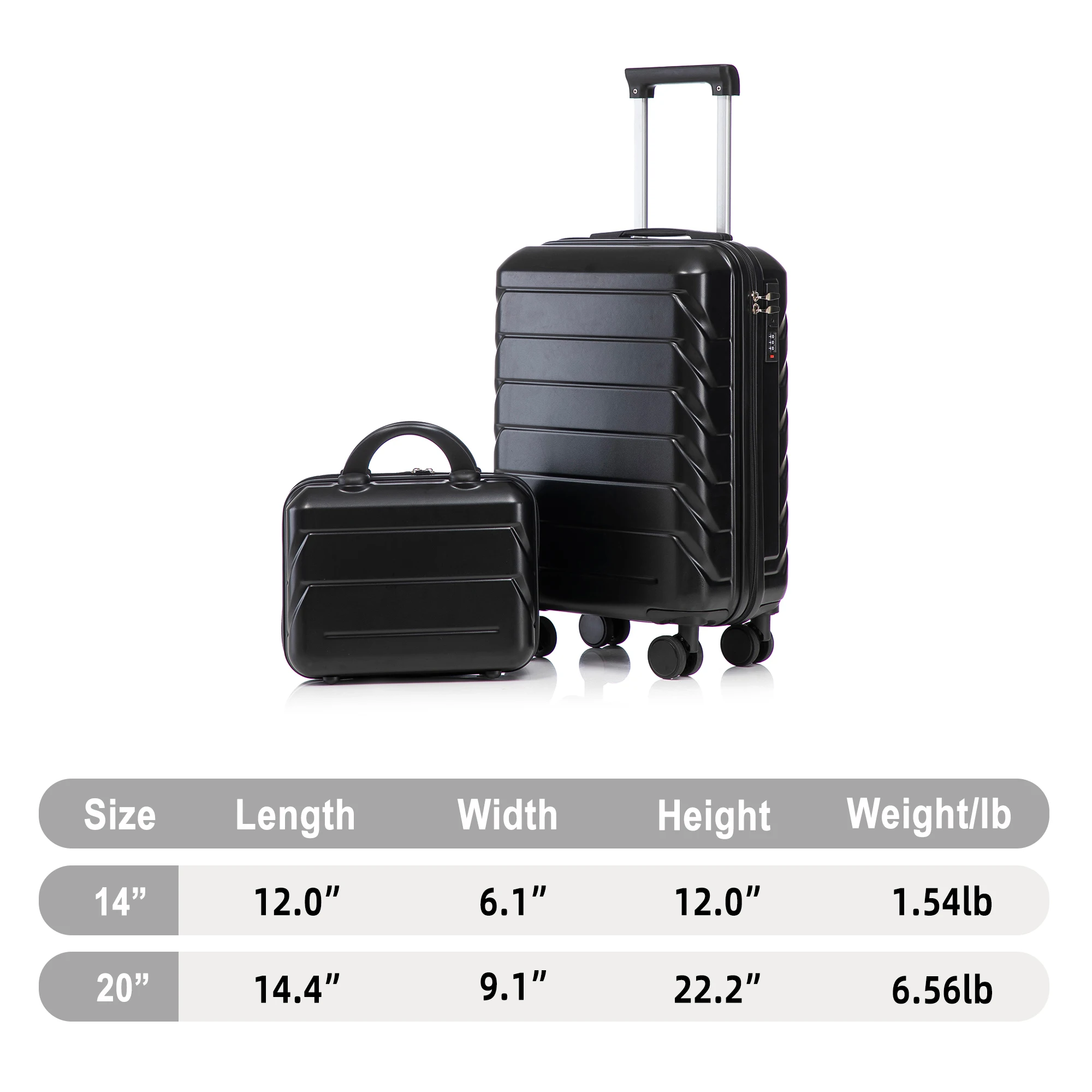 Black Friday 14"/20" 2-Piece ABS Luggage Set - Spinner Wheels Lock + 14" Cosmetic Bag