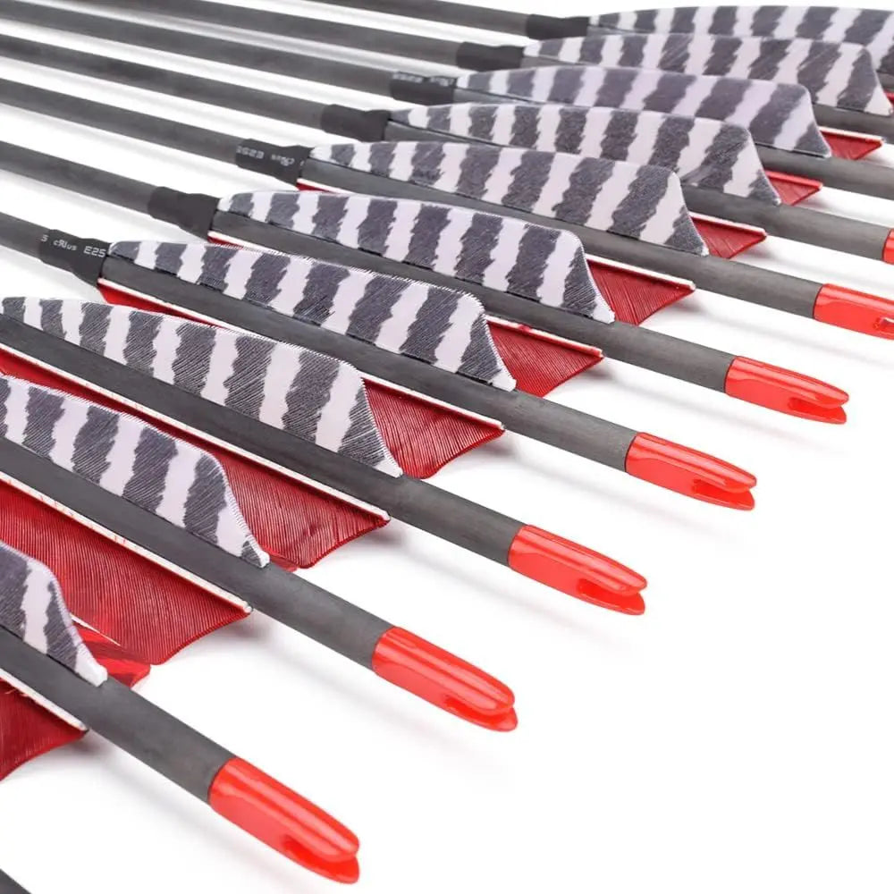 Carbon 600-700 Spine 30 Turkey Feather Fletched Arrows with Screw-In Points for Traditional, Recurve, and Compound Bows Hunting