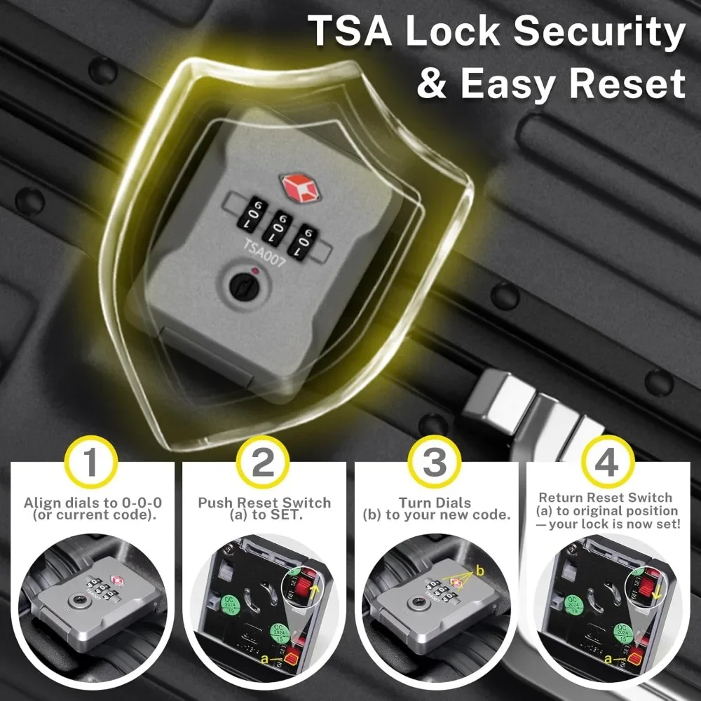 Here's the description without brand names, warranty information, chemical substances, and special symbols: - We offer a ten-year assurance to enhance your shopping experience. If you have any problem, you can contact our after-sales team at any time. Your satisfaction is our commitment. Please check the product size and color carefully before placing an order to ensure that the order is correct. - Sized at 13.58*9.25*20.47 IN, 7.93LB, the 20 inch carry on suitcase meets airline standards. With a 40L capacity, it’s ideal for short trips and business travel, offering efficient packing without checking luggage. - We include a material blend for high quality. The material is durable and strong to protect belongings. The blend makes it lighter, while a reinforced frame provides added durability for demanding travel. The sturdy suitcase protects belongings even with rough handling. - Equipped with a practical hook on the side and front, ideal for hanging items like an umbrella or bag, keeping hands free and making travelling around busy railway stations and airports easy. The multi-pocket design inside allows for organized storage of belongings, making it easy to access essentials while traveling. - Featuring a sturdy lock, the suitcase enhances the security of your luggage during travel. Its zipperless design protects belongings from unauthorized access. The zipperless design allows you to easily open the suitcase to find what you need in noisy environments without the need to go around the case a whole circle like a zip suitcase for you to open it.