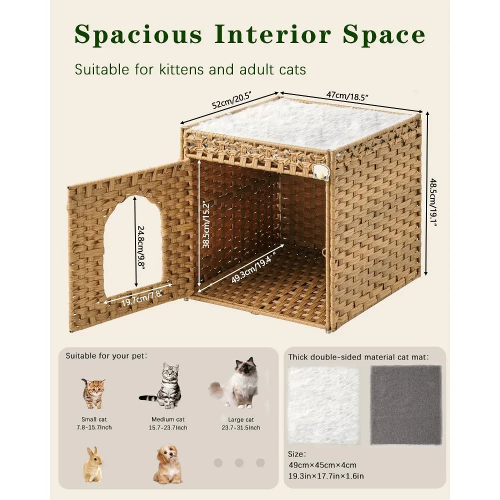 Premium Materials: Cat cubes for indoor cats is hand-woven from durable odorless rattan material with double-sided soft cushions to make covered cat bed soft and comfortable, allowing cat house indoor to provide a warm and comfortable resting space for cats