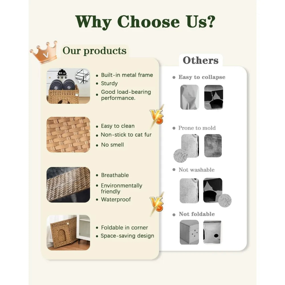 - Easy Care & Assembly: The large cat house includes a set of installation tools for quick to assemble of bed for cats. The rattan of the cat bed with cover is waterproof, indoor cat bed can be washed directly with water to facilitate daily cleaning and care