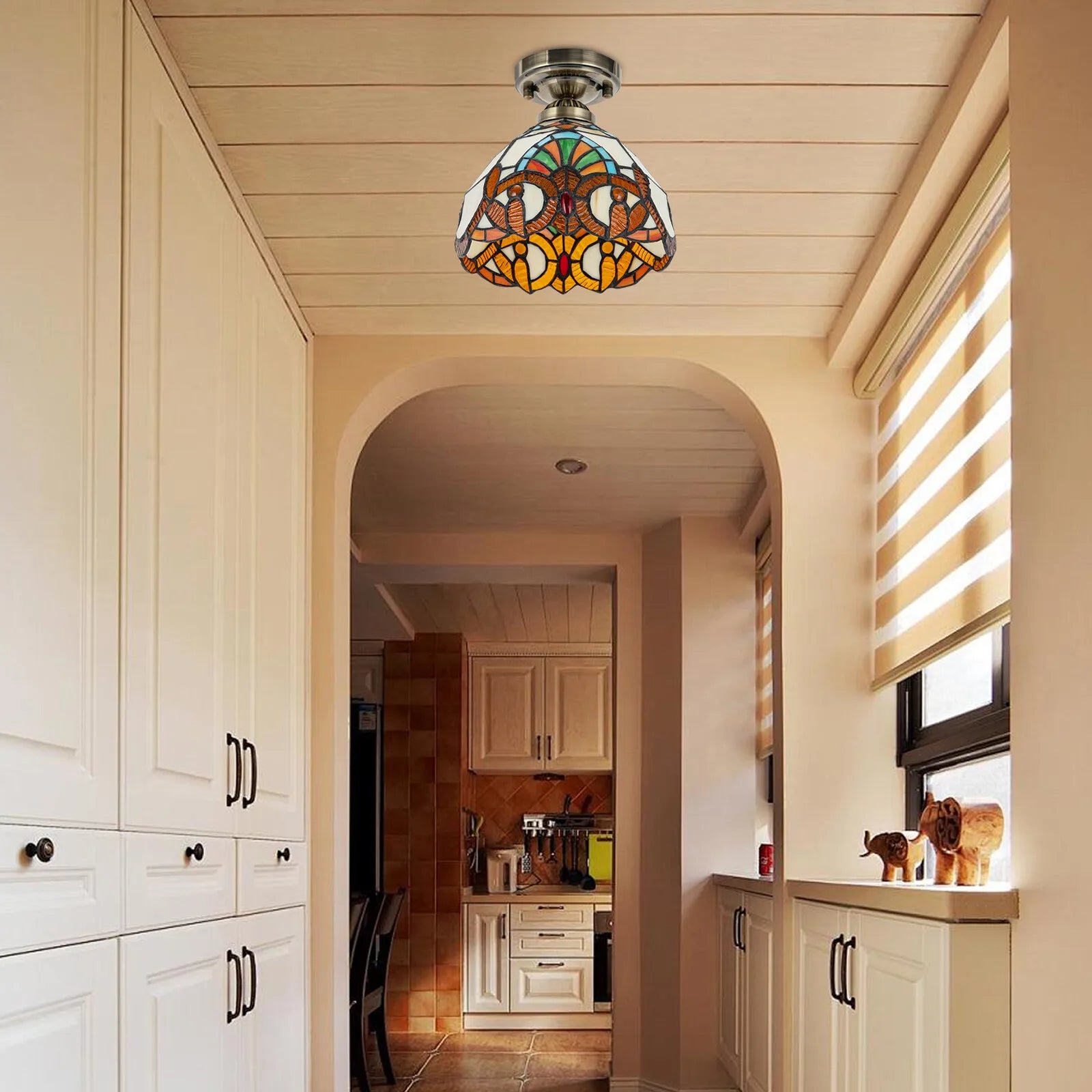 Ceiling Light E26 Baroque Stained Glass Semi Flush Mount Retro Style Lighting Lamp 3000-5000K