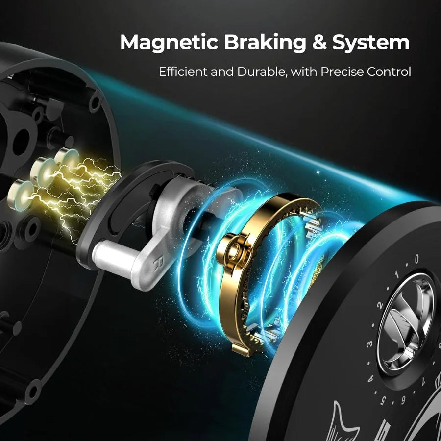 Chaos Pro Baitcasting Fishing Reel CNC Machined Aluminum Body Round Catfish Reel with 25LB Max Drag Waterproof Trolling Reel wi