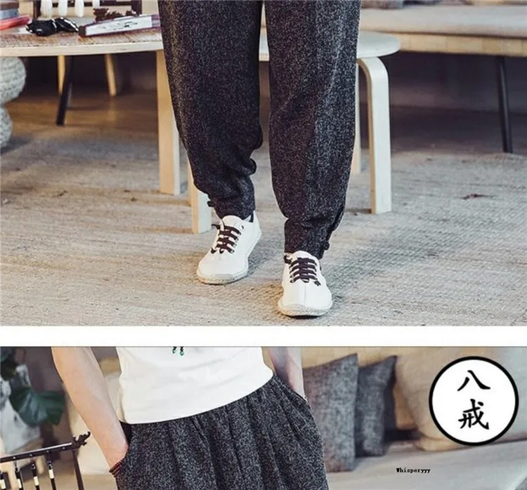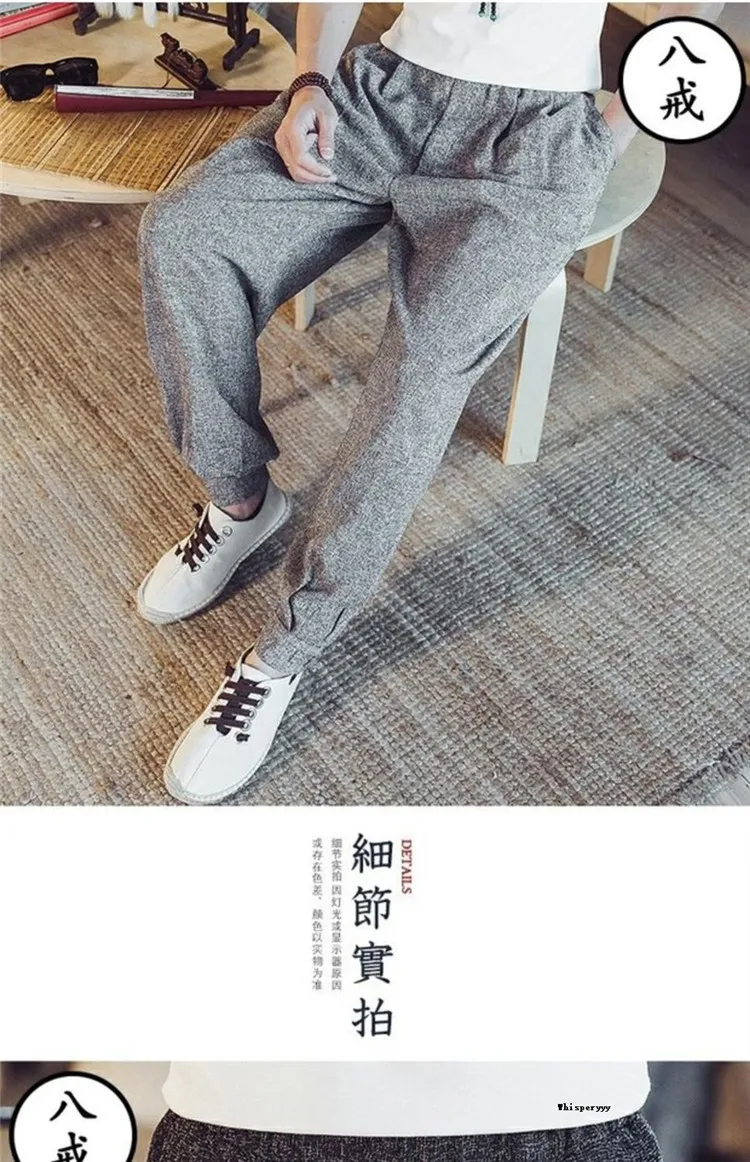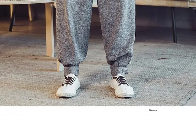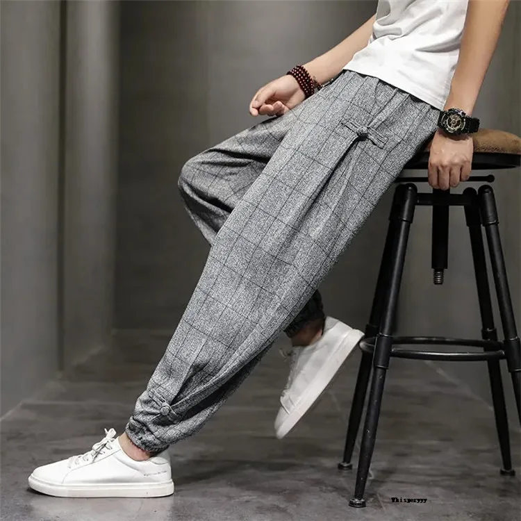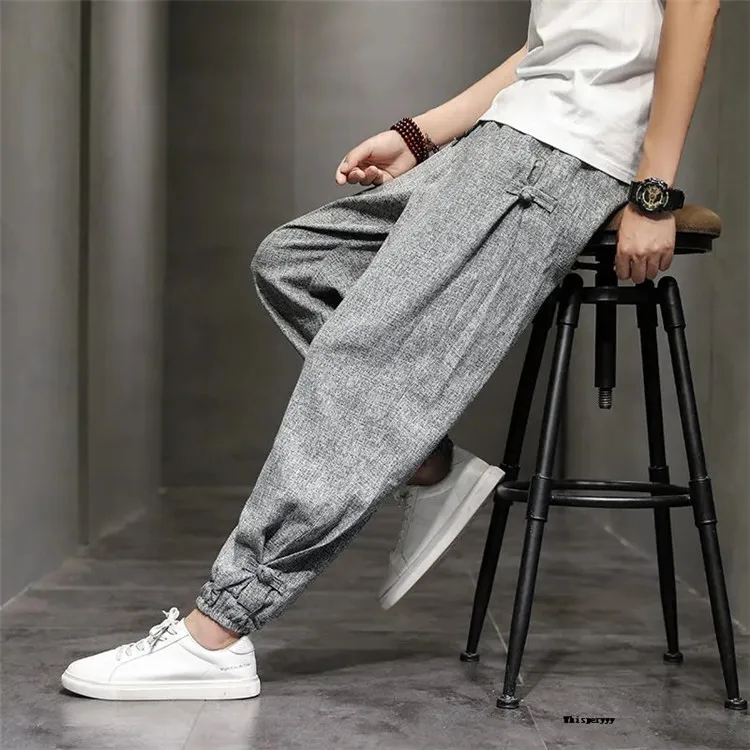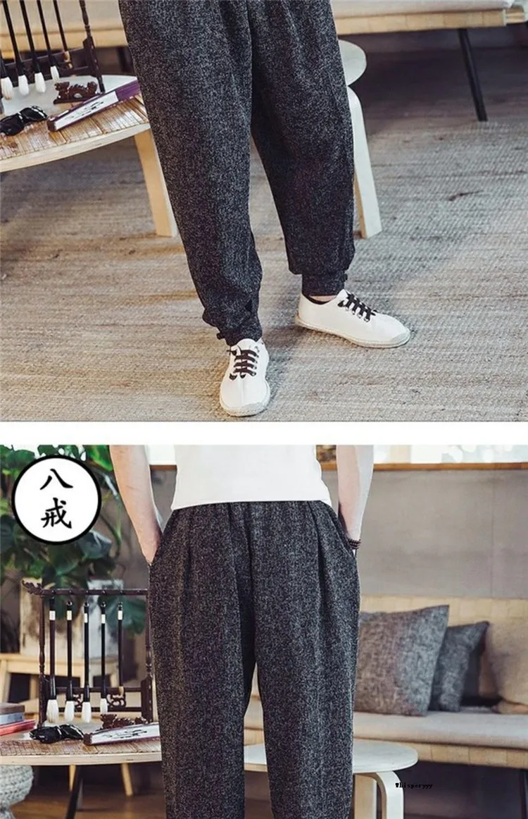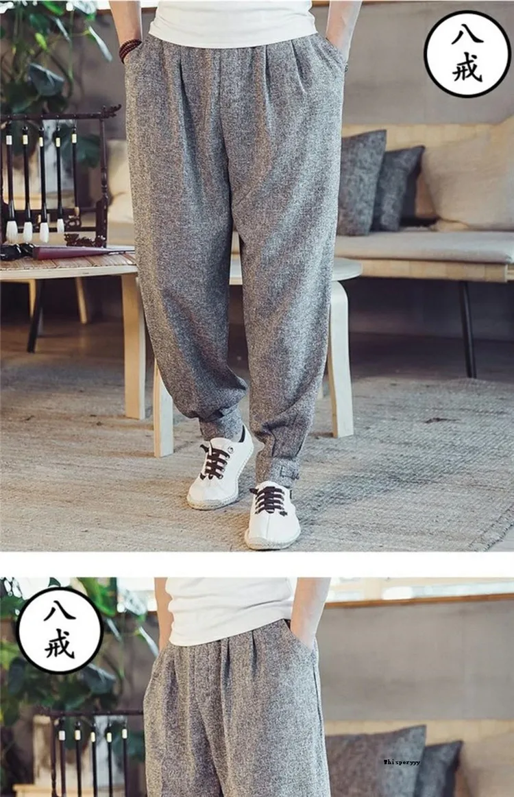 Chinese Style Men's Clothing Casual Pants Male Cotton Linen Lantern Trousers Streetwear Spring Summer Harem Pantalones New