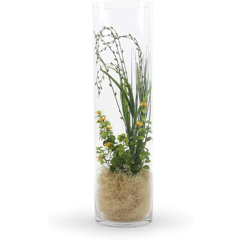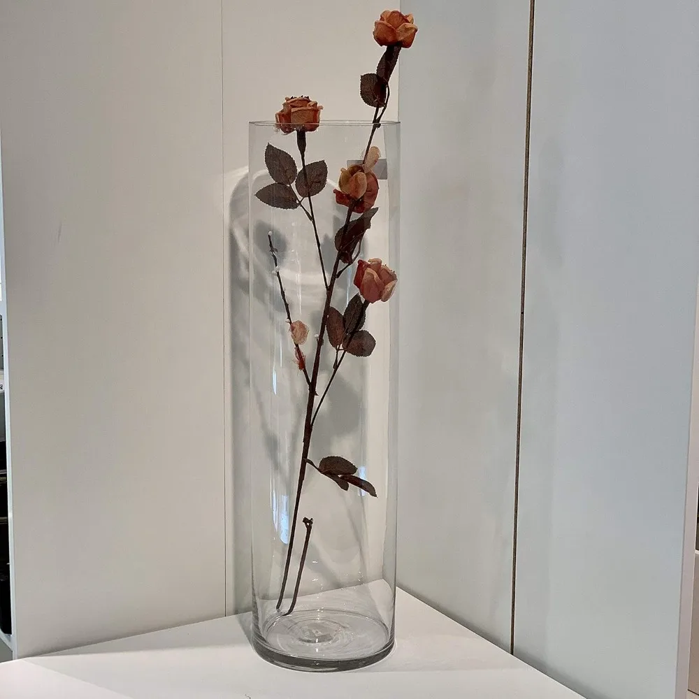Clear Tall Cylinder Glass Vase Bulk, Open Width 7, Height 26, Large Floral Container, Planter, Centerpieces for Wedding Parties