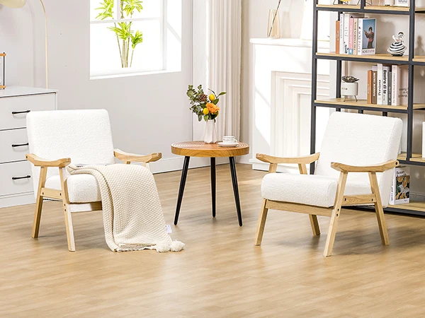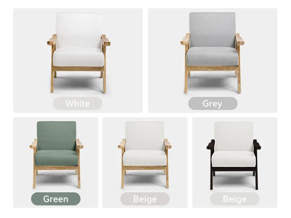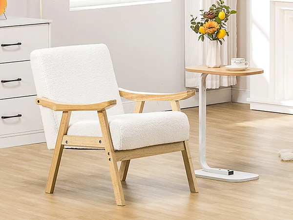 COMHOMA Mid Century Accent Chair, Modern Upholstered Armchair with Solid Wood Armrest for Living Room, Bedroom, Sunroom, Balcony