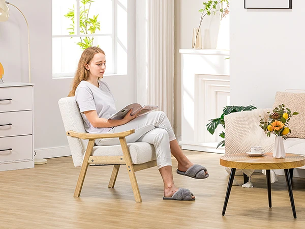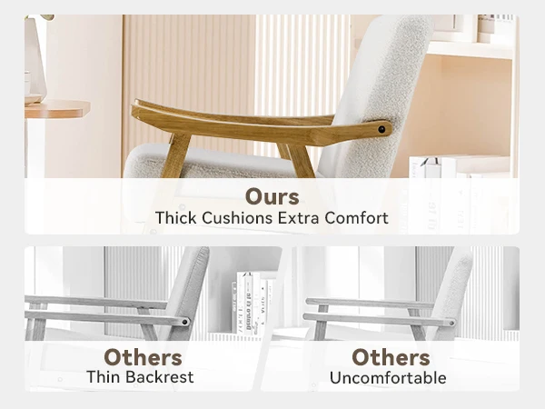 【Premium Material】: Living room accent chairs with solid nature wood frame provides a sturdy structure for long-lasting durability. The cushions are made of high-density resilient sponge, soft and comfortable. Besides, the breathable linen cover features a gentle texture and friendly touch. This bedroom chair is sturdy and environmentally friendly, good for lounging or reading.<br>