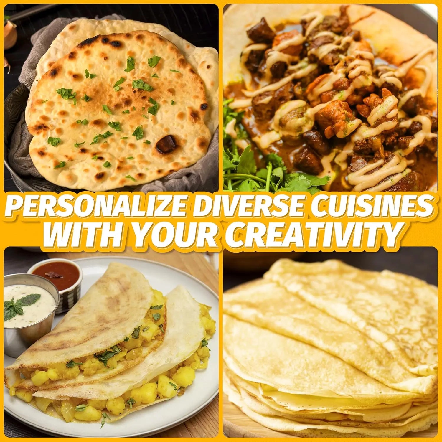 6. [MULTIFUNCTIONAL CULINARY TOOL]: Beyond rotis, the Roti Maker showcases its versatility in crafting an array of flatbreads and pancakes, including crepes, tortillas, chapatis, and mini pancakes. It even doubles as an egg cooker for a nutritious breakfast on the go. This multifaceted functionality transforms the Roti Maker into a indispensable kitchen companion, unlocking endless cooking possibilities.