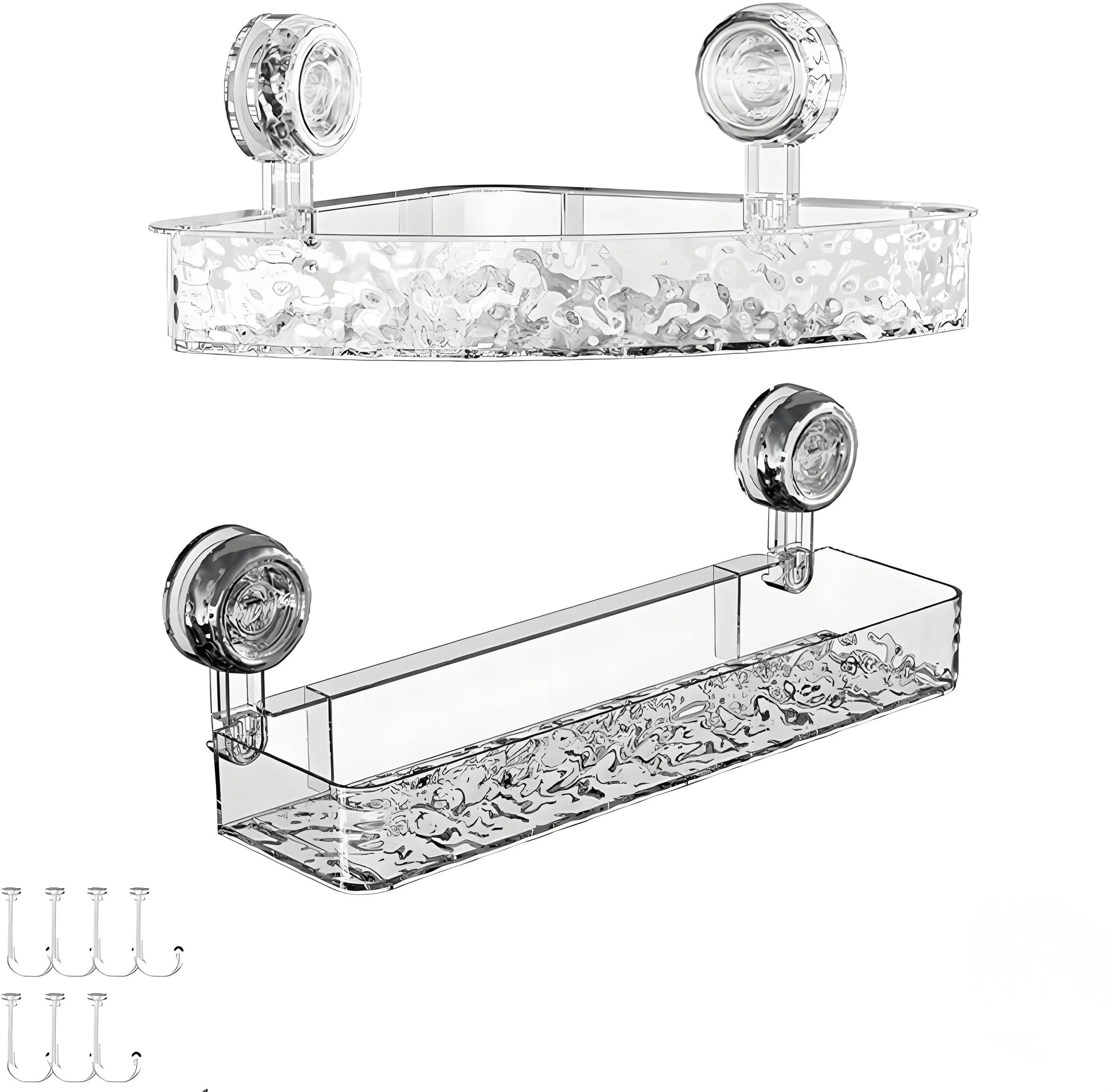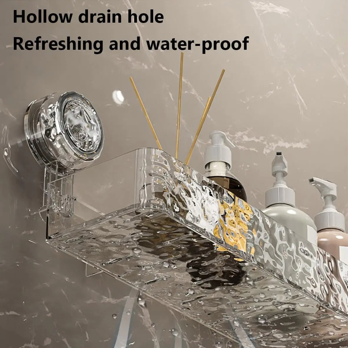 Corrugated Suction Cup Storage Holder Light Luxury Style Glacier Pattern Suction Cup Shelf No-Drill Bathroom Suction Storage Box