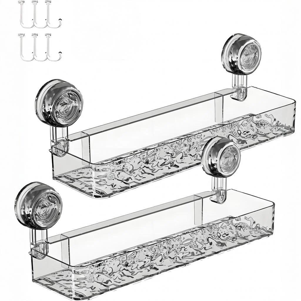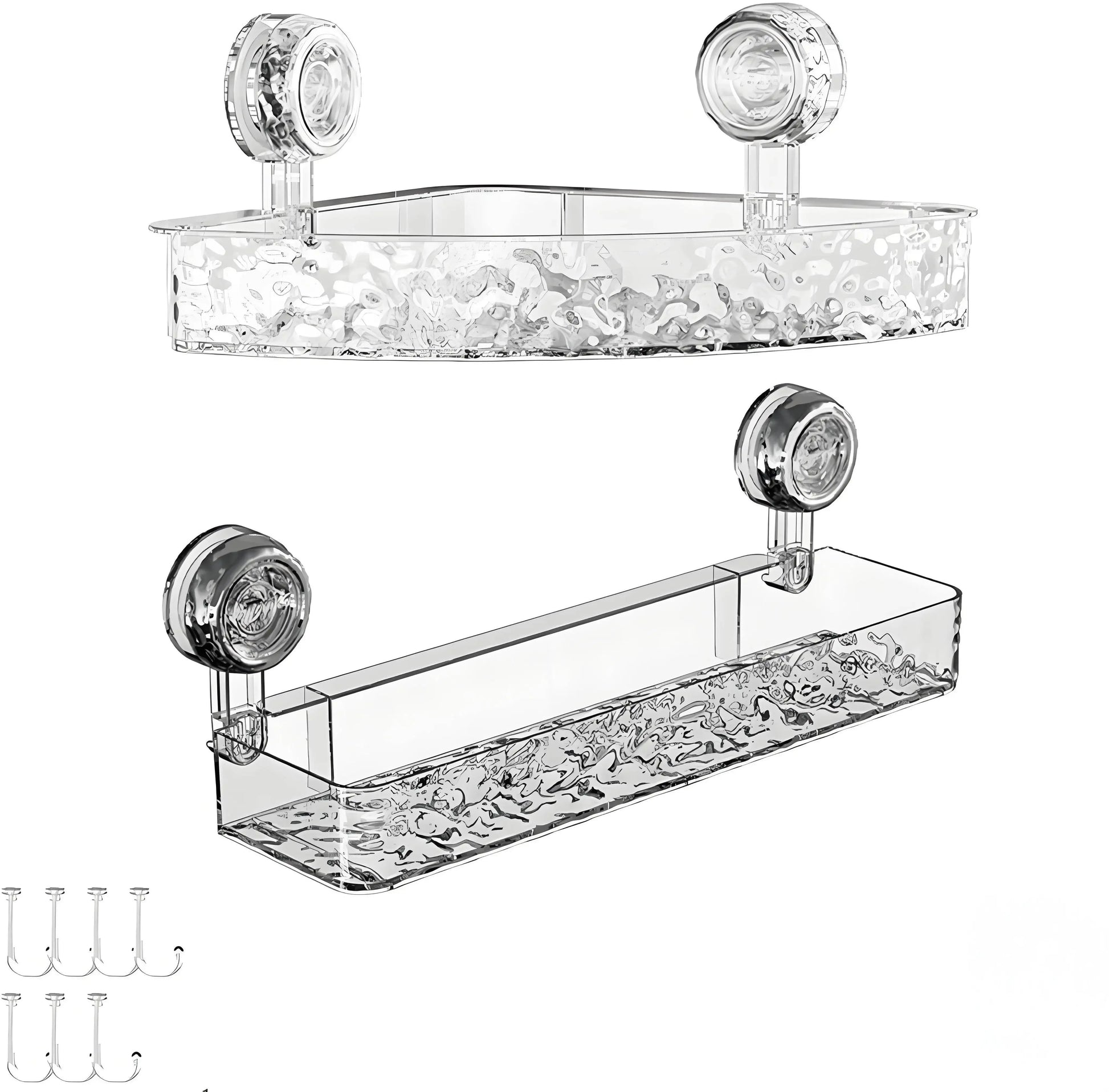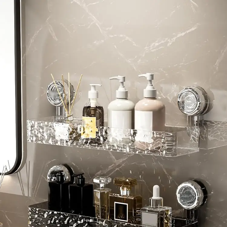Corrugated Suction Cup Storage Holder Light Luxury Style Glacier Pattern Suction Cup Shelf No-Drill Bathroom Suction Storage Box