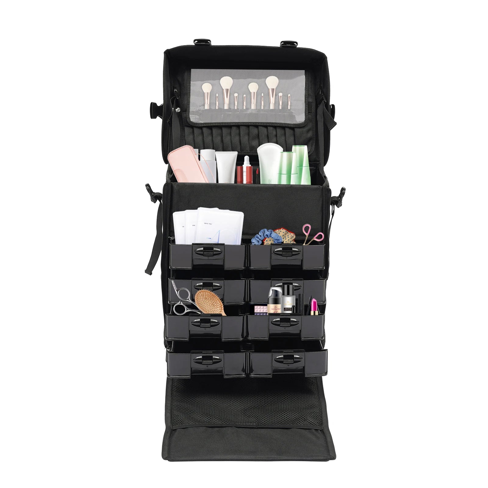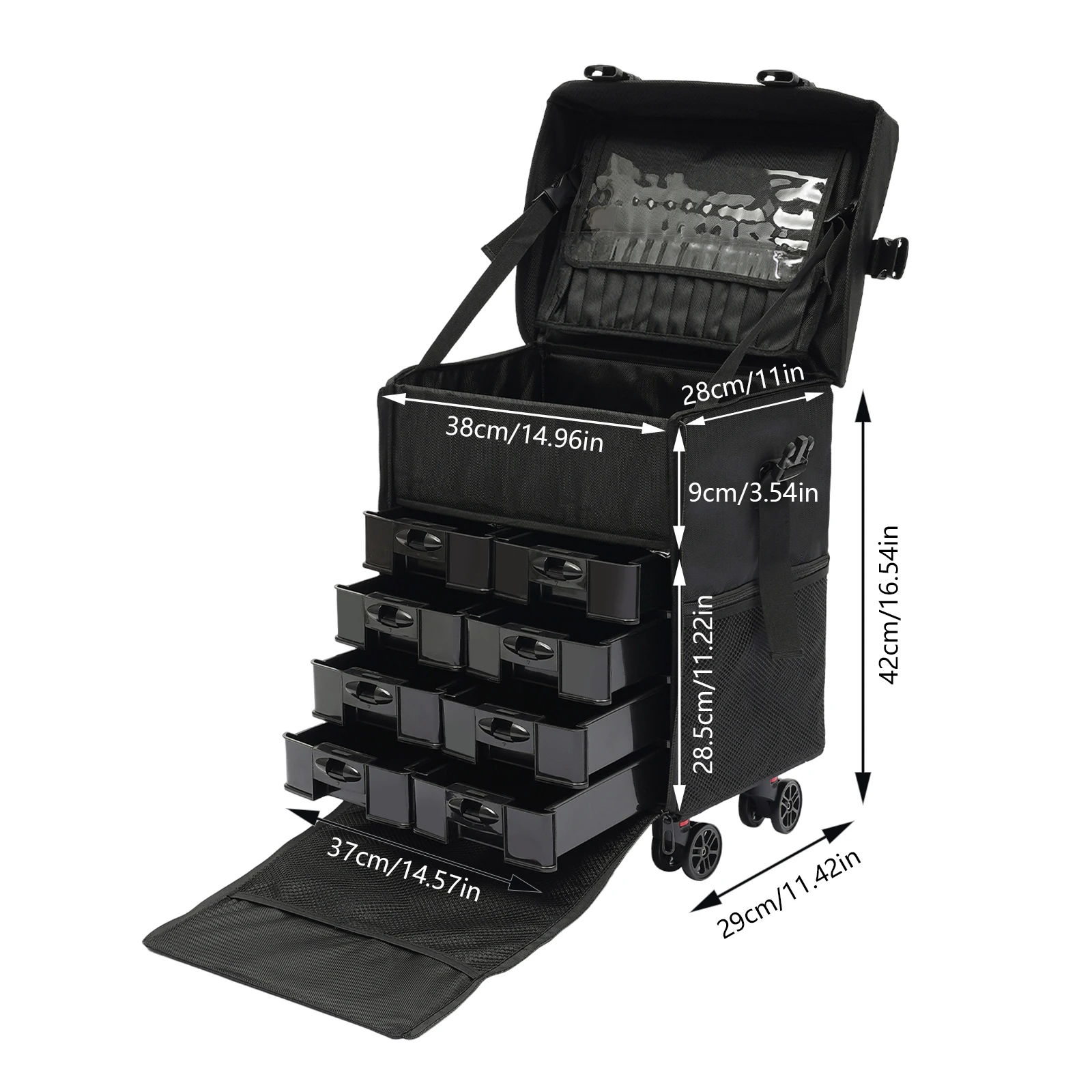 Cosmetic Case Trolley Large Capacity Rolling Makeup Train Case Cosmetic Travel Trolley w/ 8 Removable Drawers