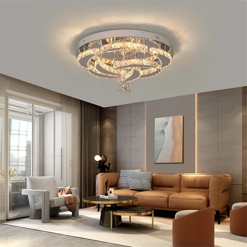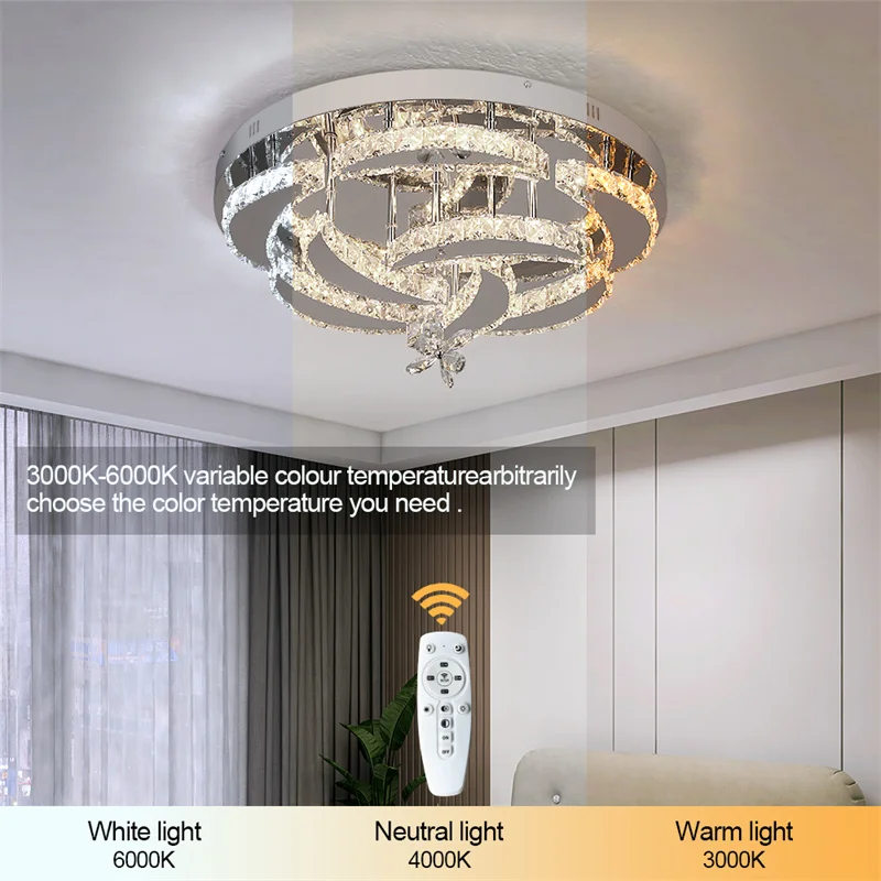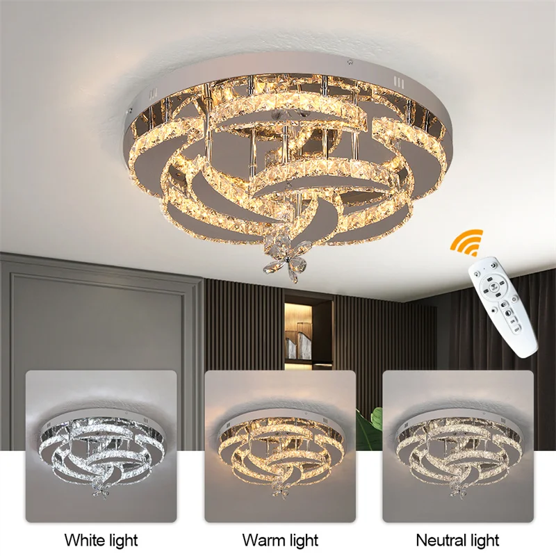 Crystal Ceiling Lamp Led Chandelier Modern Penadant Lighting Fixture For Living Dining Room Bedroom Decorate Lustre RC Dimmable