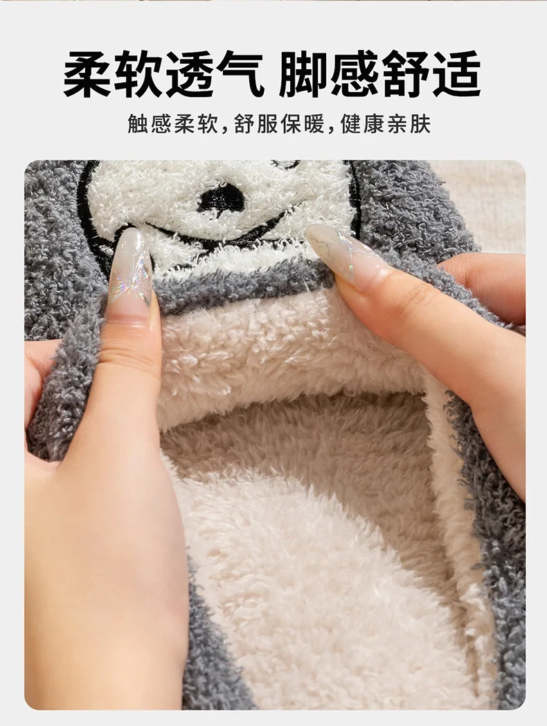 Cute Bear Pattern Home Slippers Soft Plush Cozy House Slippers Anti-skid Slip-on Shoes Indoor For Men Winter Shoes New
