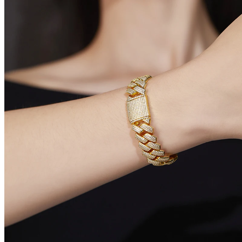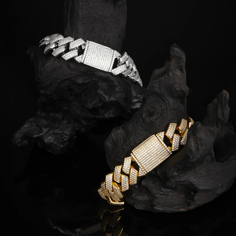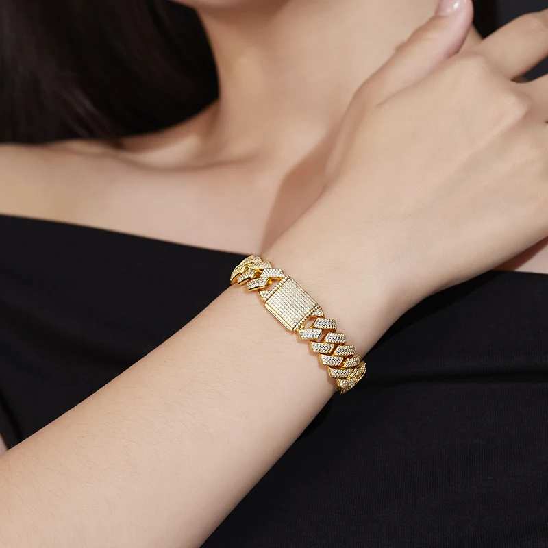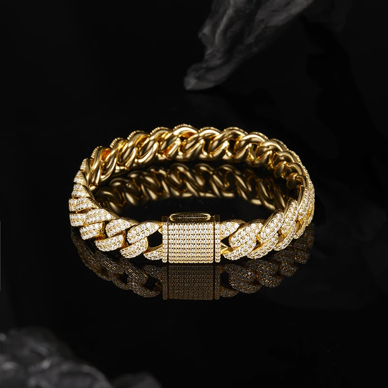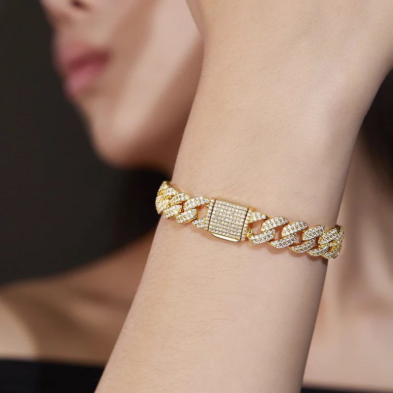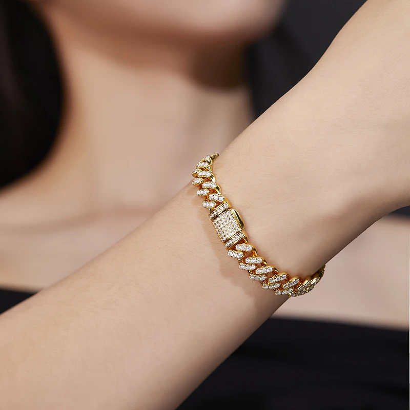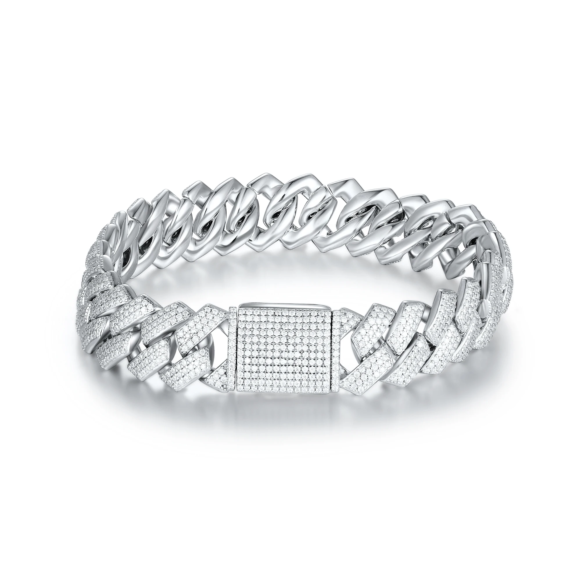 D Color Full Moissanite Real S925 Sterling Silver Cuban Bracelet with GRA Hiphop Cuban Link Chain Fine Jewelry Men Women Gift