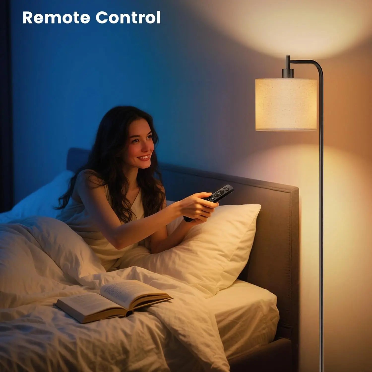 Dimmable Floor Lamp with Linen Shade, Remote Control, 3 Color Temperatures, Modern Standing Lamp for Living Room Bedroom Office,