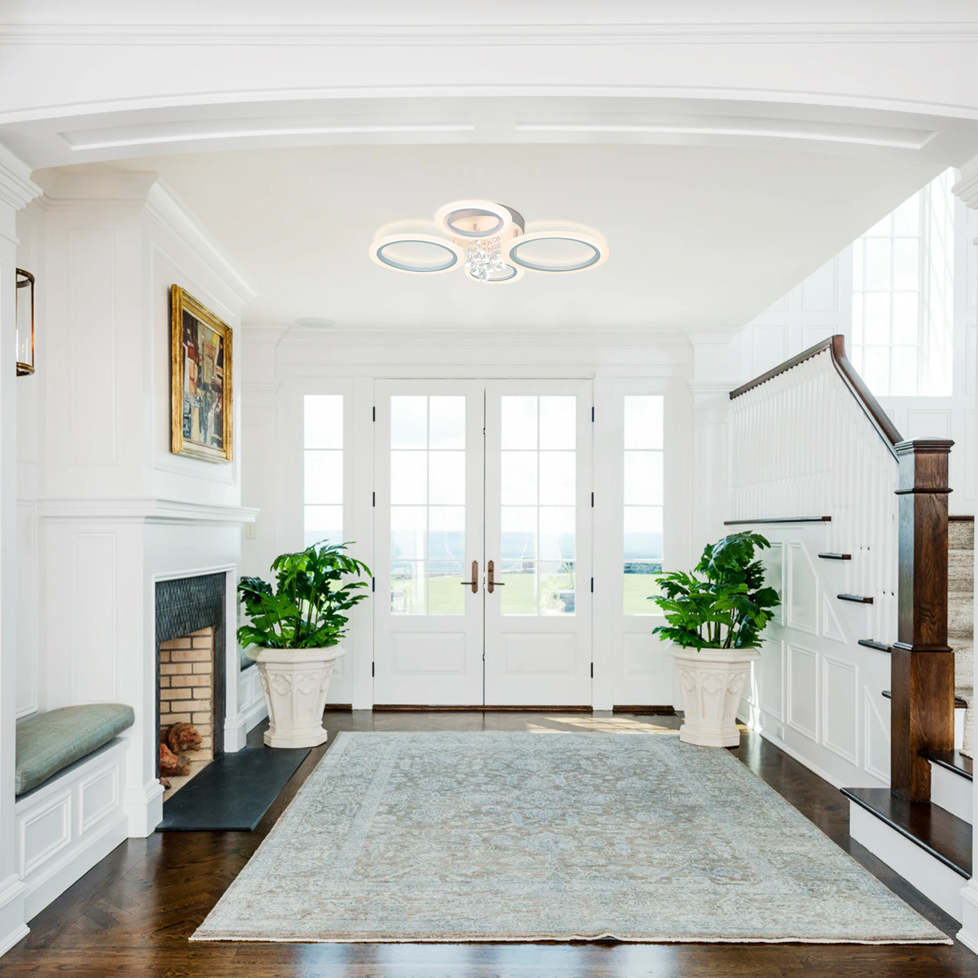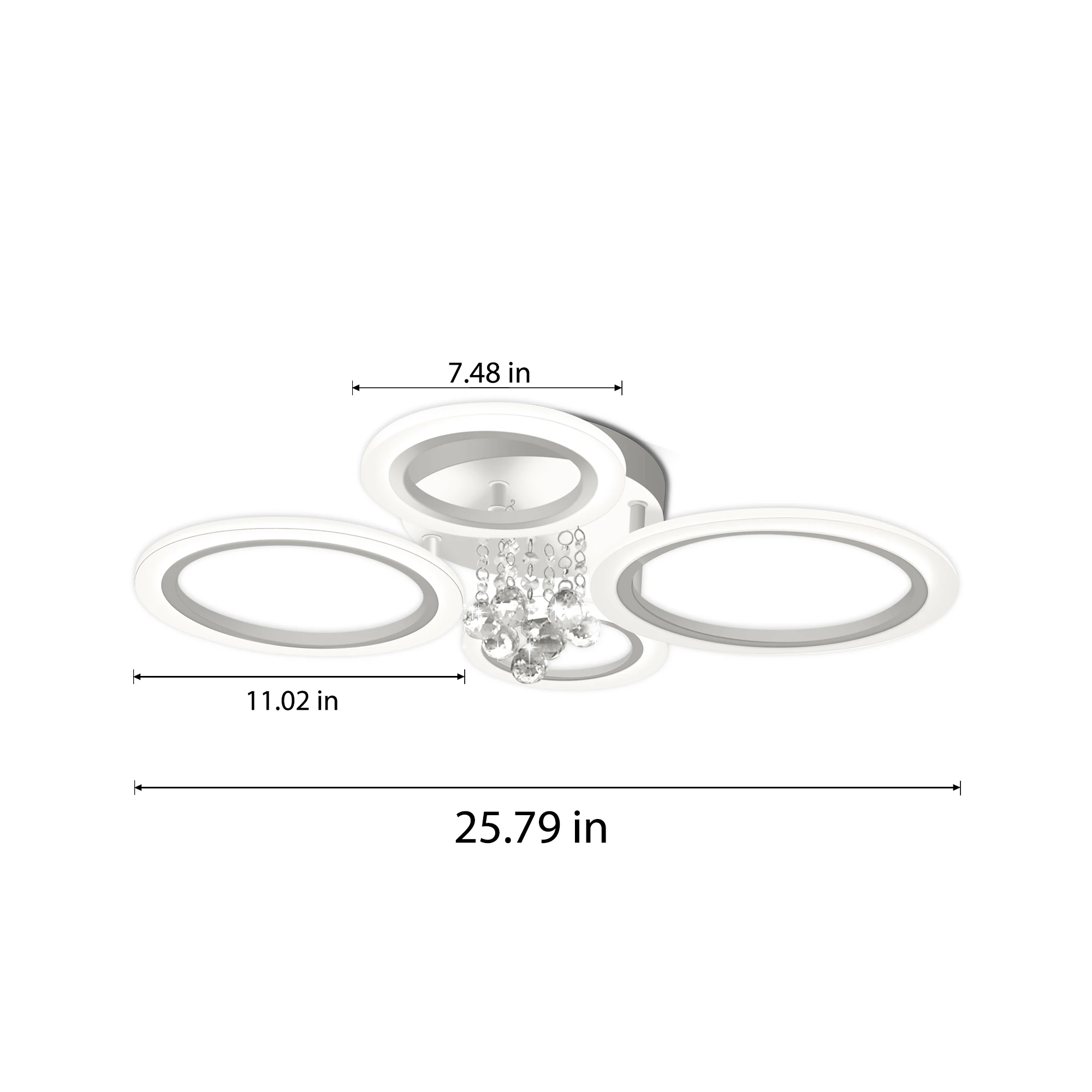 Dimmable Modern Flush Mount Ceiling Lighting Fixture White 4 Rings Round Chandelier Ceiling Lamp for Small Room, Bedroom
