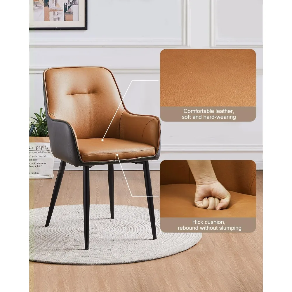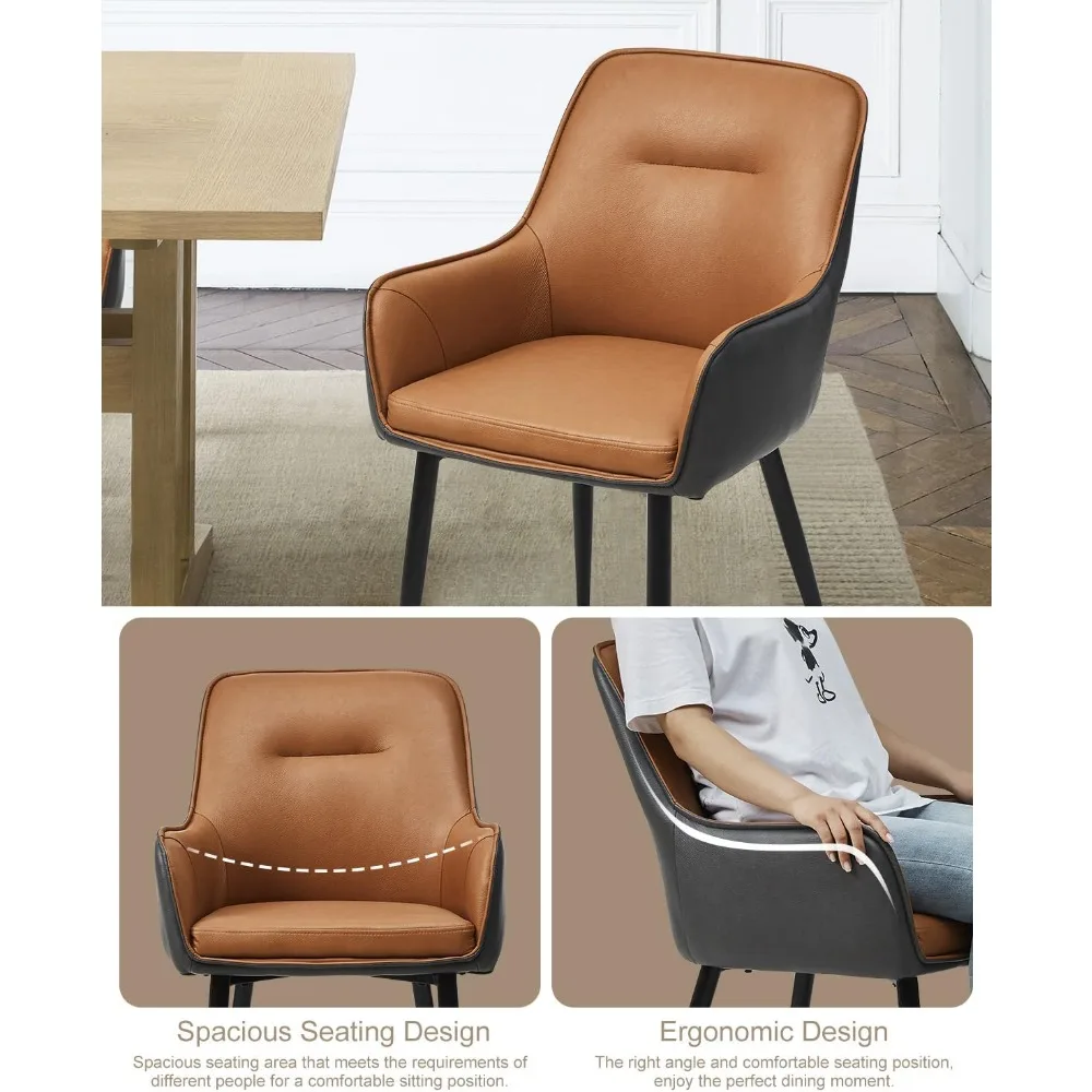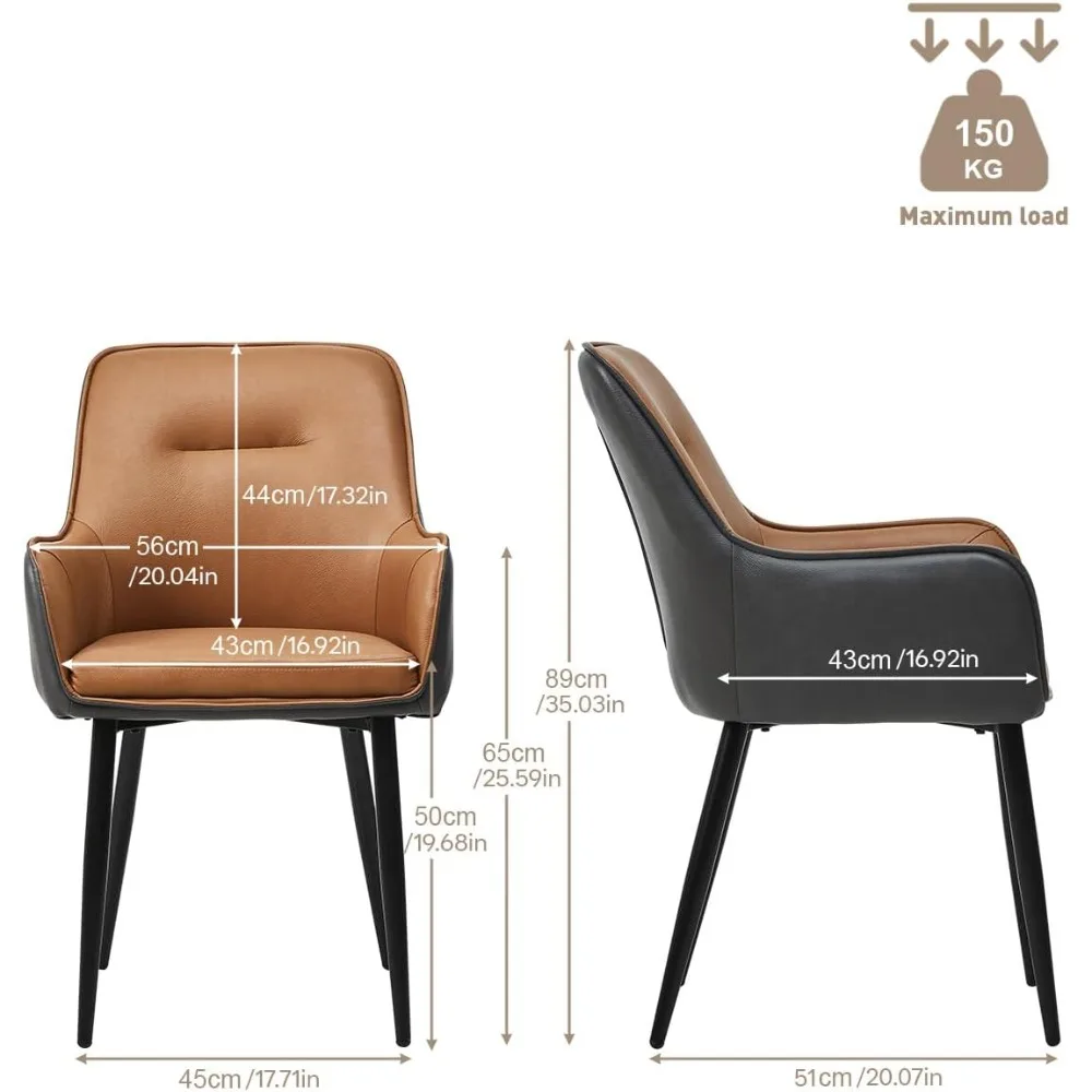 Dining Chairs Set of 2, Upholstered Dining Chairs with Arm, Faux Leather Accent Kitchen Chair, Modern Sillas de comedor
